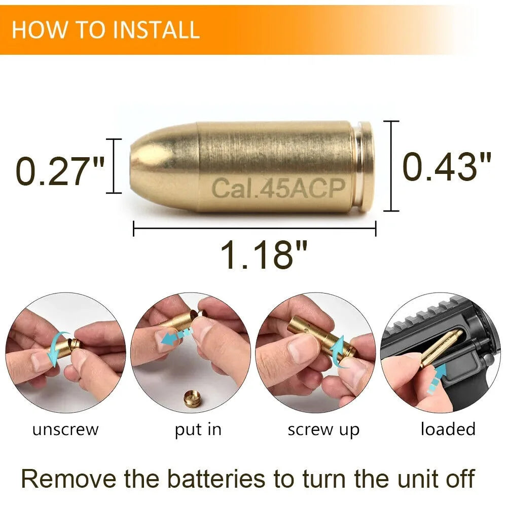 Red Dot Laser CAL.45ACP/.45 Brass Bore Sighter Cartridge Boresight For Hunting