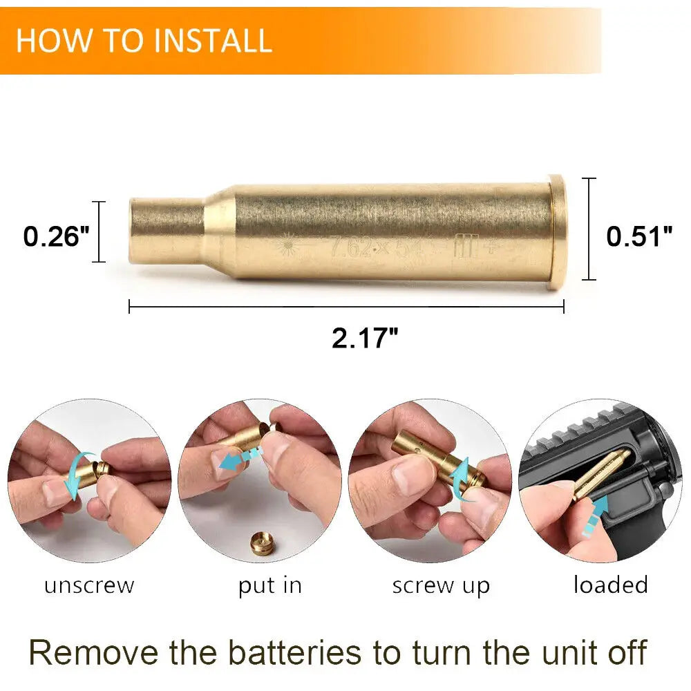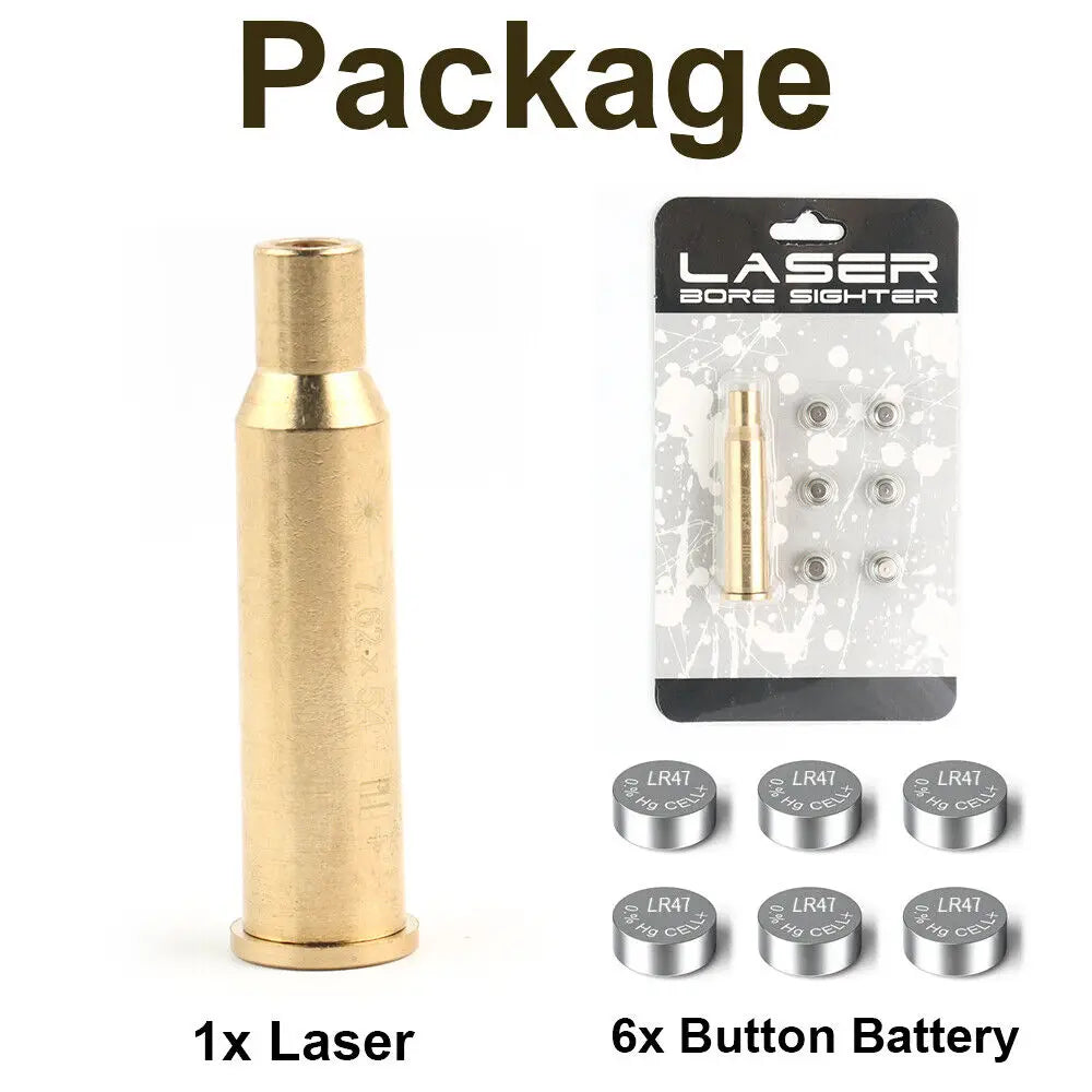 CAL 7.62X54R Red Laser Bore Sight Cartridge Dry Fire Shooting Boresight W/ 6Pcs Battery