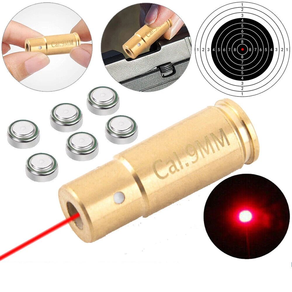 CAL 9mm Red Laser Bore Sight Cartridge Bullet Shap Boresighter w/ 6 Batteries US