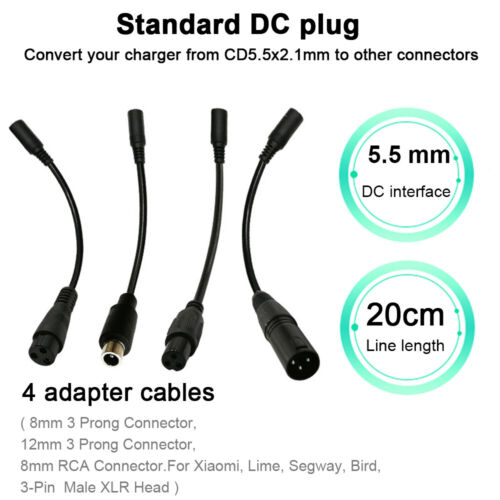 ④convert 5.5 one prong DC plug to 8mm RCA Connector.For Xiaomi, Lime, Segway, Bird.