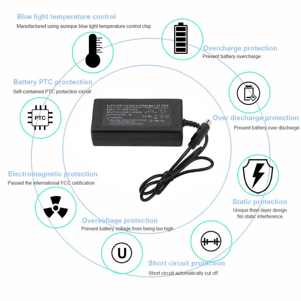 Input: 100-240VAC,50/60Hz,1.5A,Output: 42V 2A Power Max: 84W