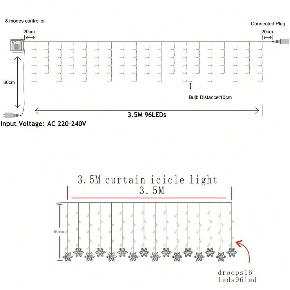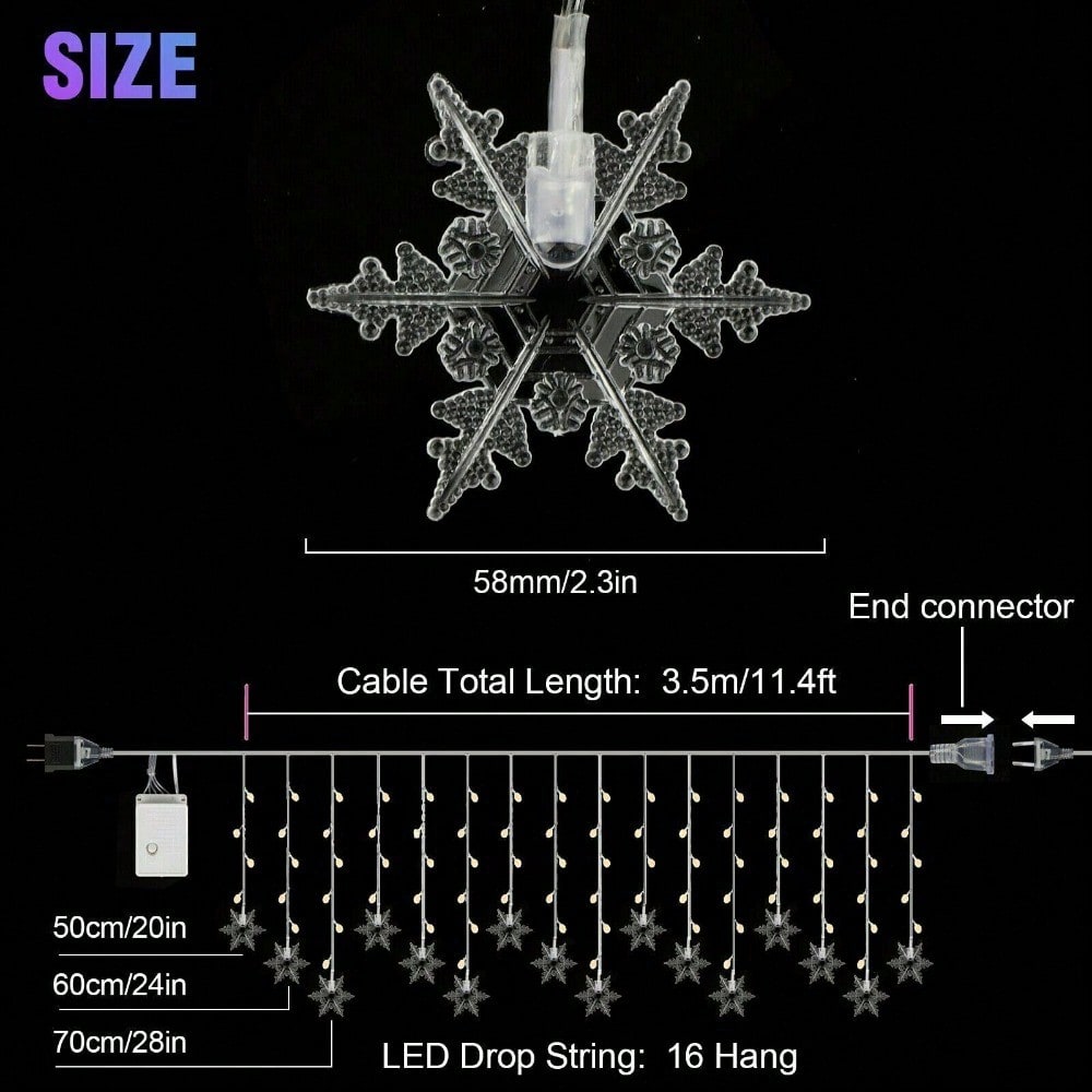 STONESKY Christmas LED Curtain Snowflake Lights Window String Fairy Waterproof Decor Xmas