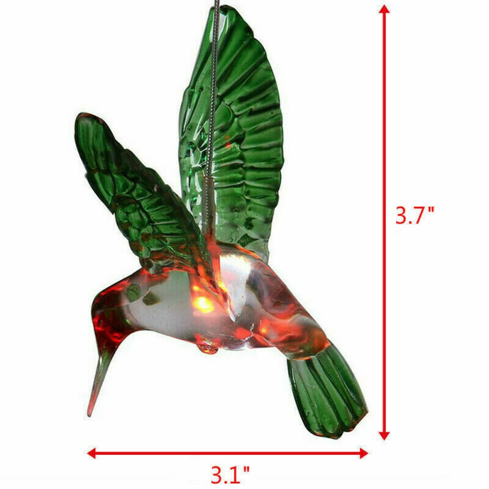 Solor Power features a unique design with six color changing hummingbird hanging under the wire that illuminates at night.
