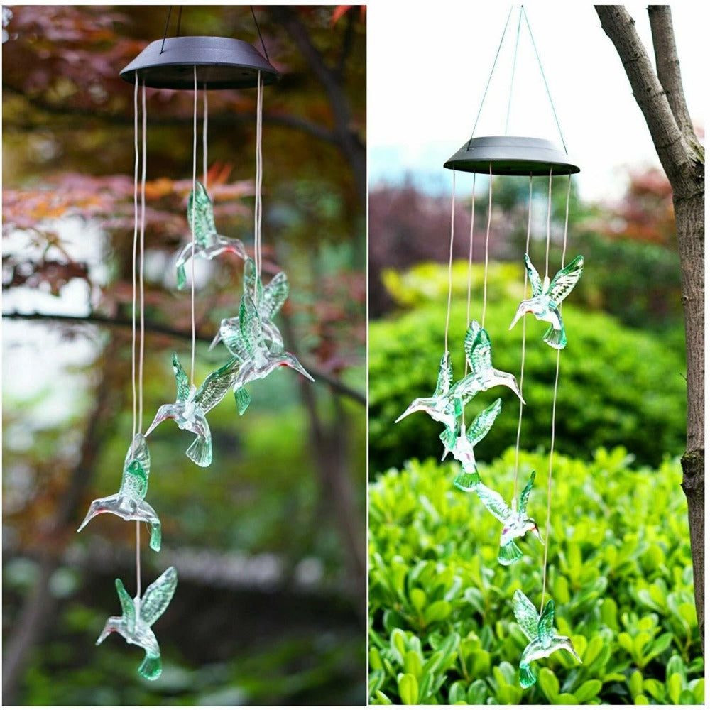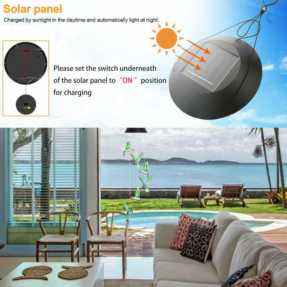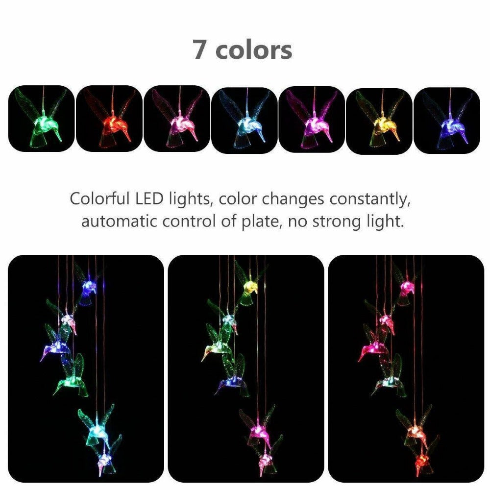 1 xColor-Changing LED Hummingbird Solar Wind Chimes Yard Home Garden Decor