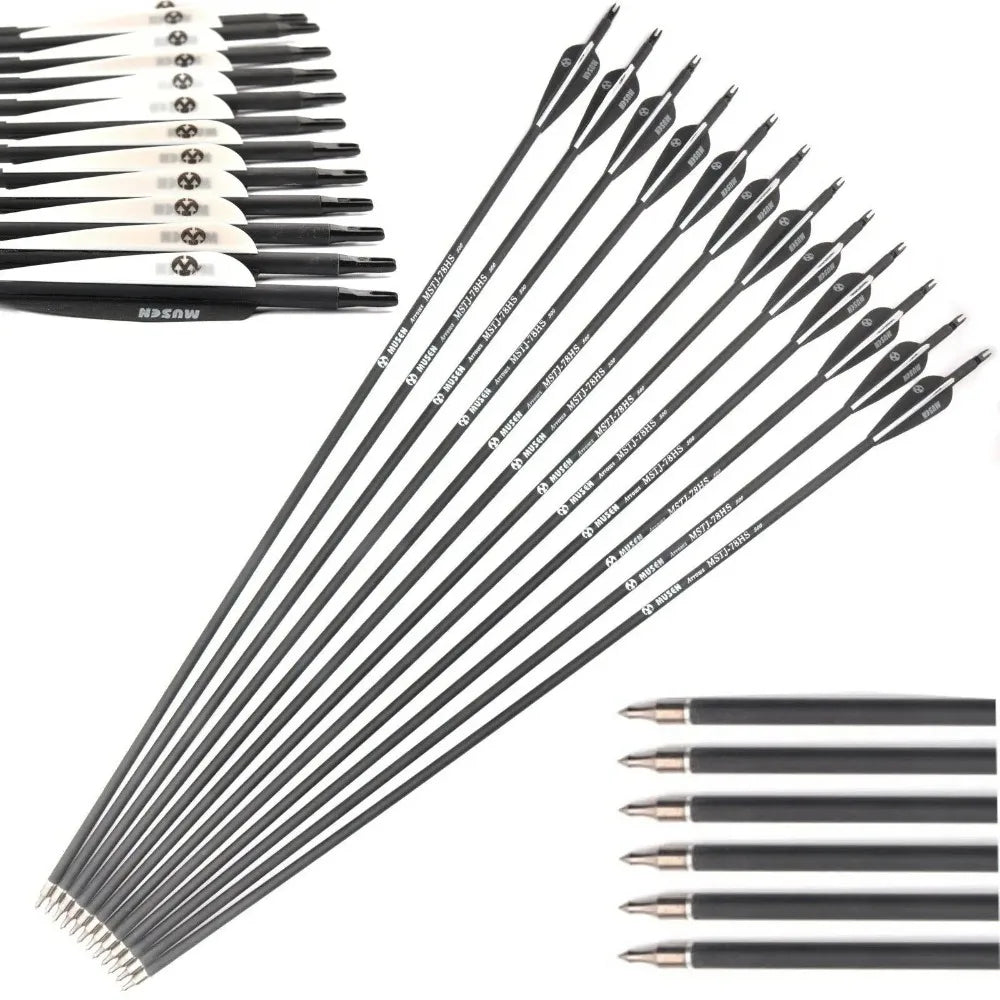 STONESKY Drop Ship 12Pcs 30" Mixed Carbon Arrows Archery Spine 500 Hunting For Compound/Recurve Bow hunting