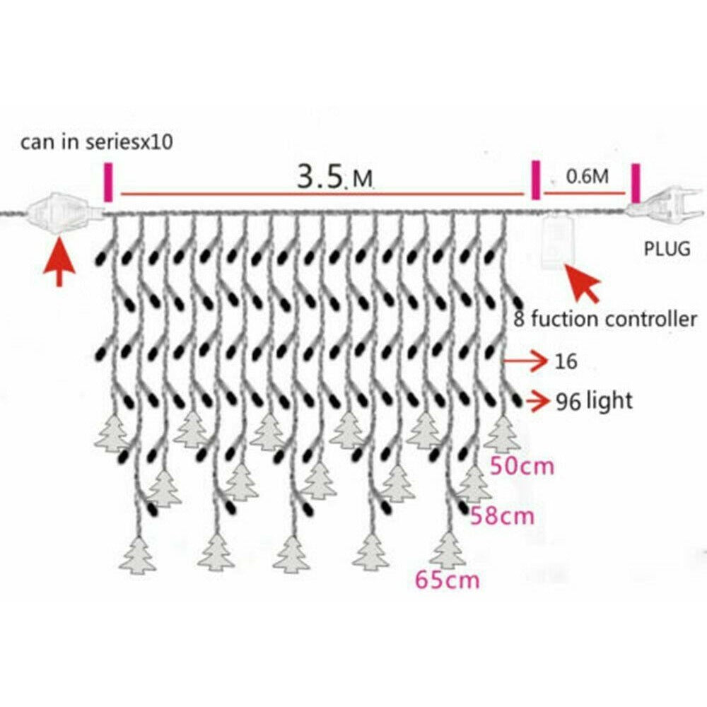 Bulbs Per Set: 3.5M 96 LED Bulbs(drooping 16,length 50 58 65cm)