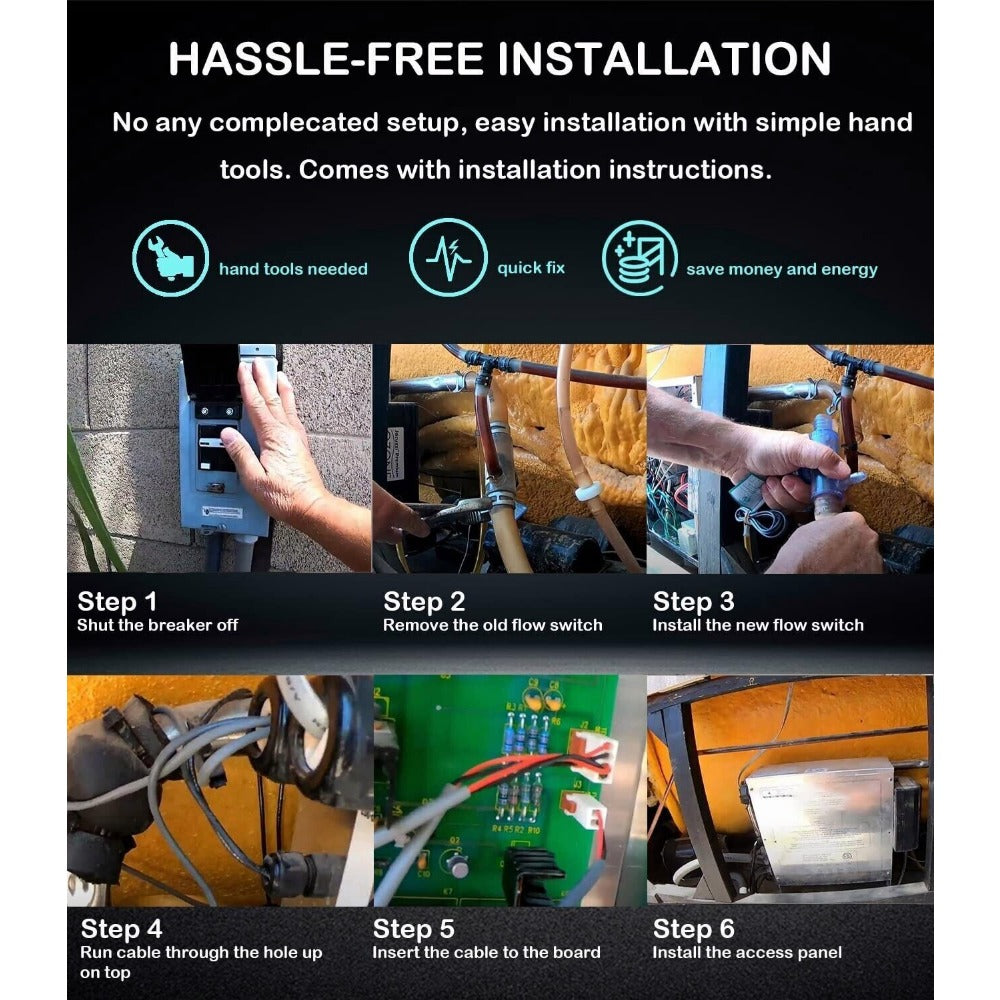 A defective flow switch will cause a "Flashing Flo" or "Solid Flo" on the Control Panel Icon. It is time to replace the flow switch if you get "Solid Flo" error. "Flashing Flo" may caused by defective flow switch, clogged or defective circulation pump, or dirty spa filter.