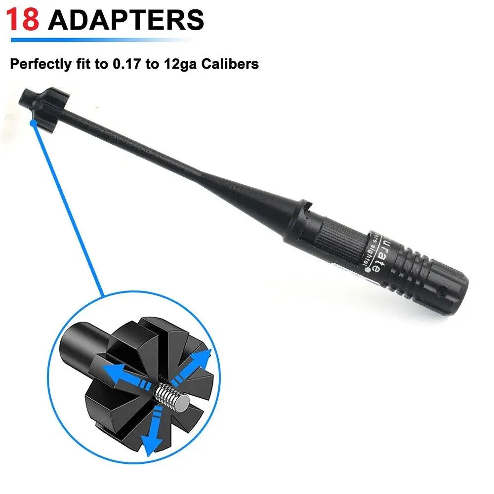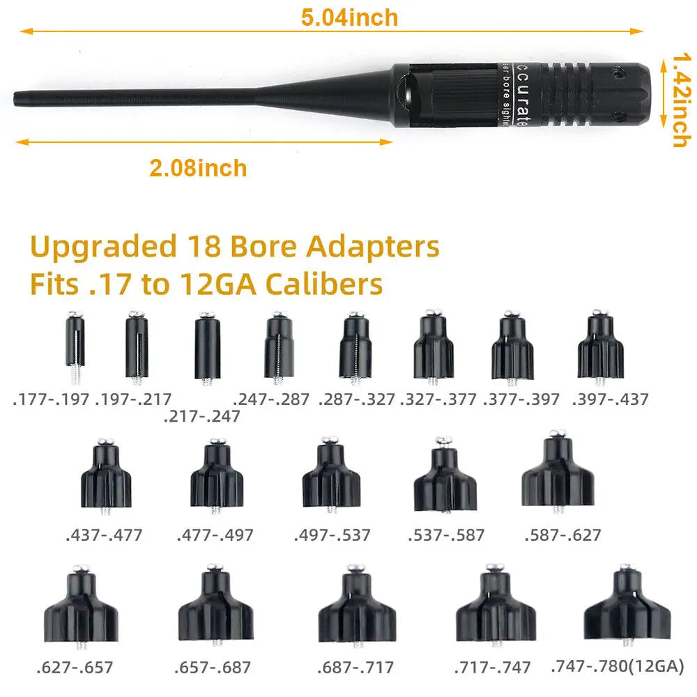 【Upgraded 18 Adapters.Fit for .17-12GA Calibers】Our laser boresighter kit includes 18 adapters, suitable for calibers ranging from 0.17 to 12GA, compatible with pistols, rifles, and shotguns. It helps you quickly zero your gun's scopes, optics, and iron sights.