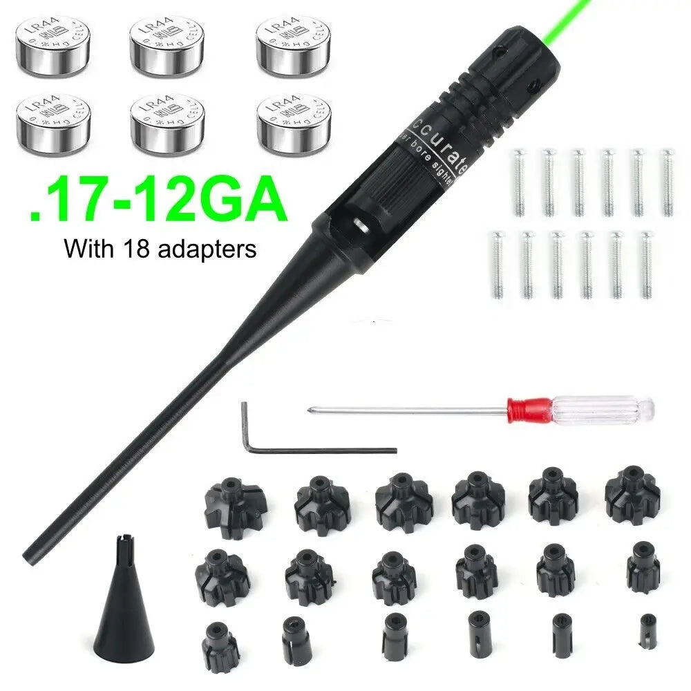 Green Laser Bore Sight Boresighter Kit for .17 to 12GA Gun with 18 Adapters