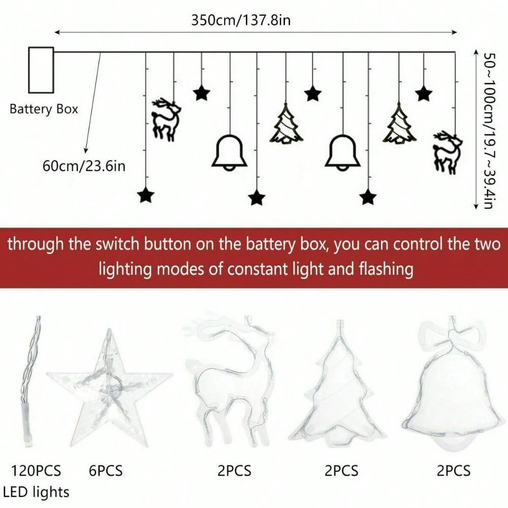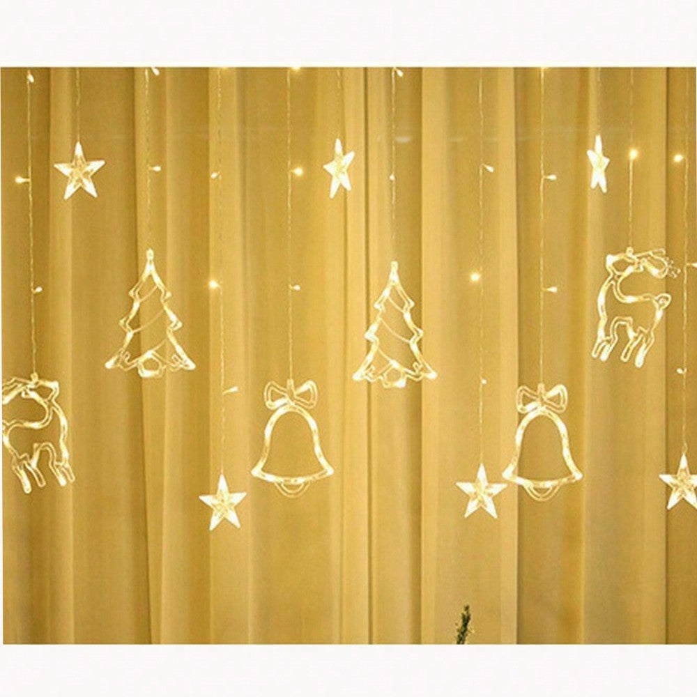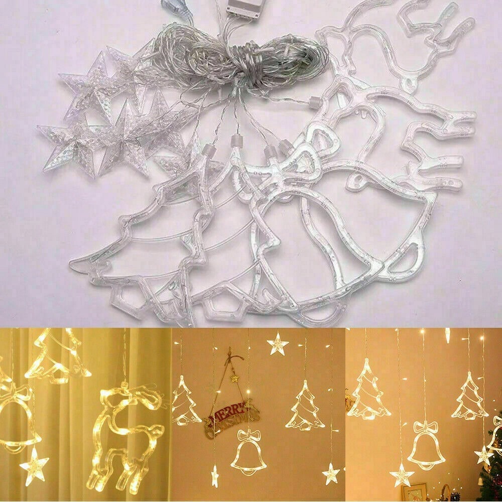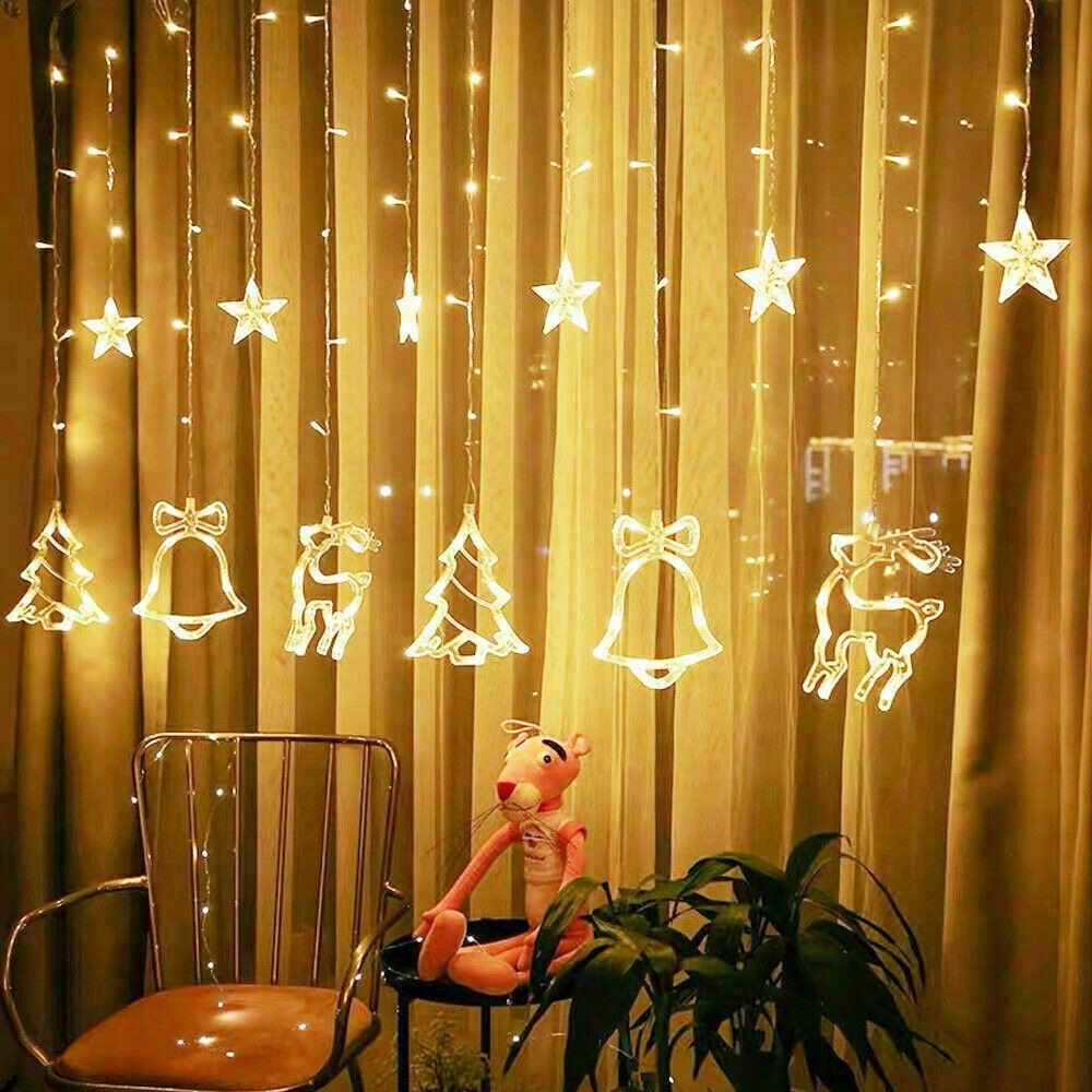 STONESKY LED Curtain Fairy String Light Star Deer Bells Xmas Tree Light Christmas Decor