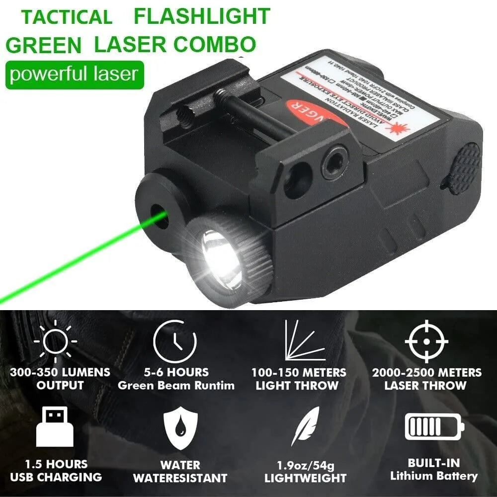 LED Flashlight & Green Laser Sight Pistol 20mm Picatinny Rechargeable holographic sight