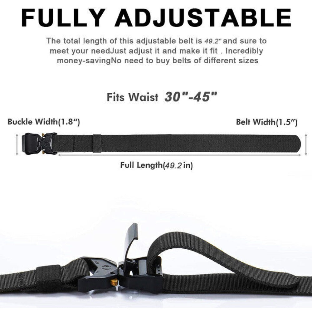 【Adjustable Tactical Belt Size】Length - 49.2 inch, Width:1.5 inch, fit for waist 30-45 inches. Buckle Size: 1.89" in width. Duty Belt suitable for most men and women.
