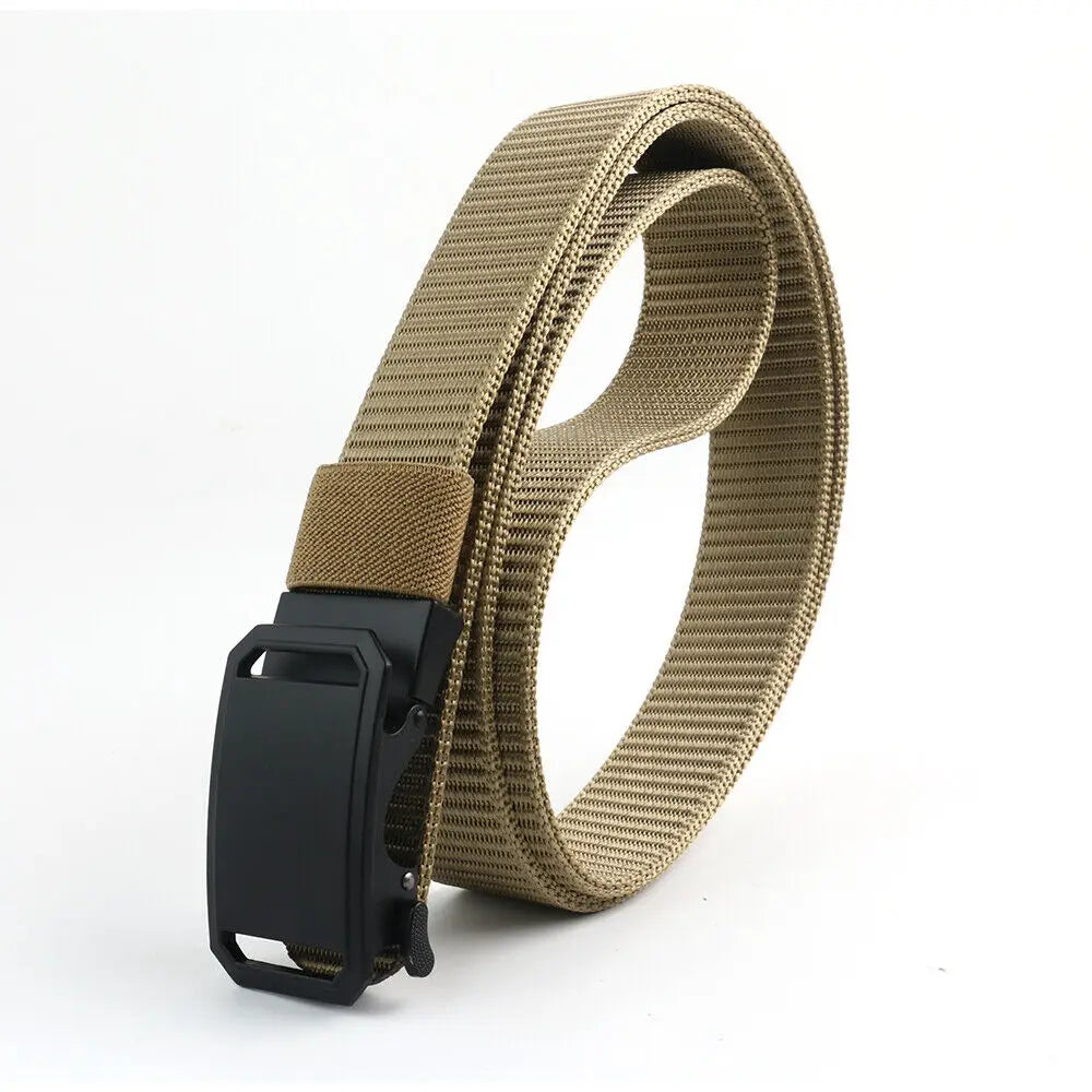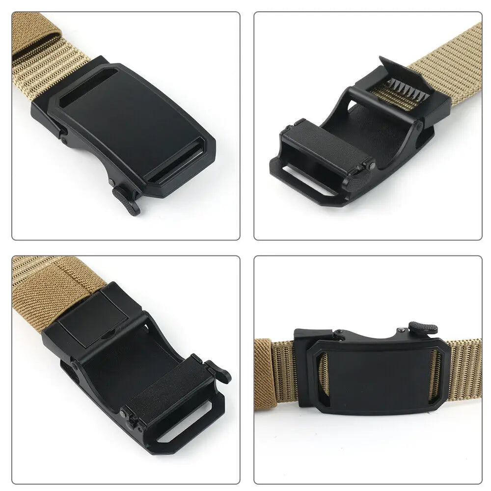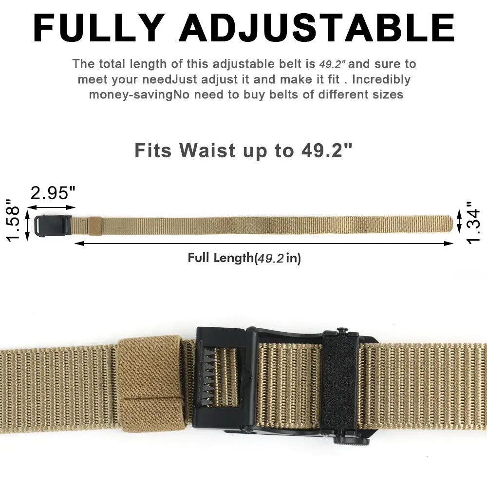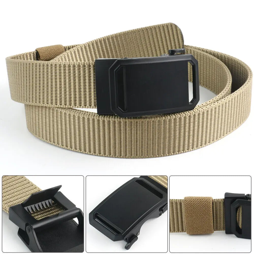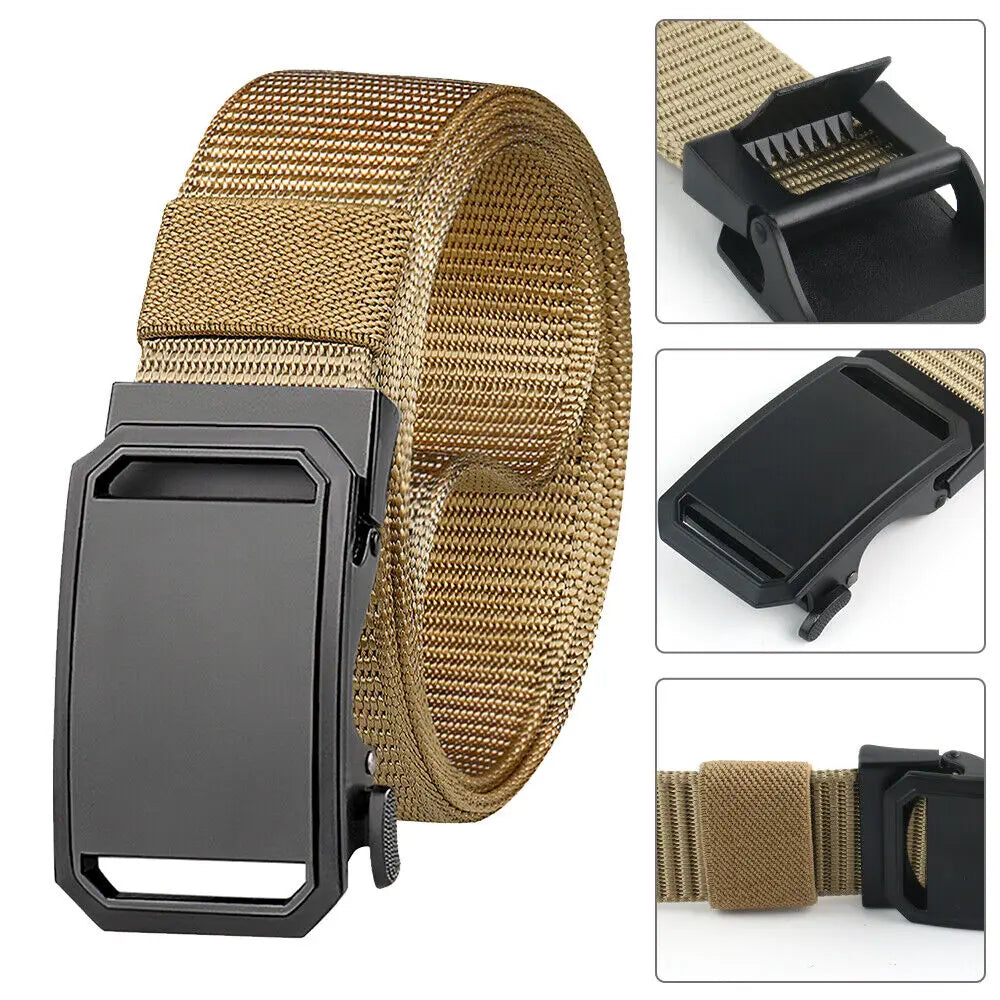 Nylon Ratchet Belt for Men Belt Alloy Automatic Buckle Adjustable Belt Quick Release Belt Brown
