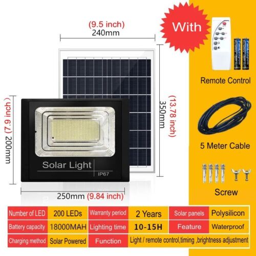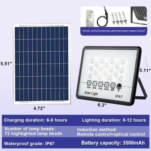 StoneSky Outdoor Waterproof Flood Light Solar Dusk Dawn LED Road Lamp+Solar Panel+Remote