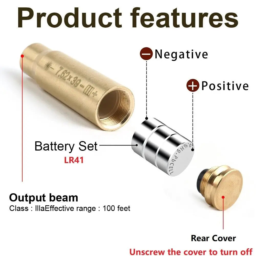 We provide with 2 sets (6 total) batteries for the CAL 7.62X39 laser bore sight. Battery type is LR41.