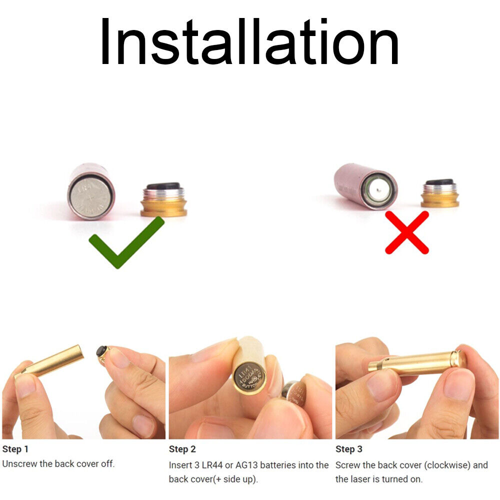 * Insert the batteries according to the instruction and load the bore sight into the chamber.