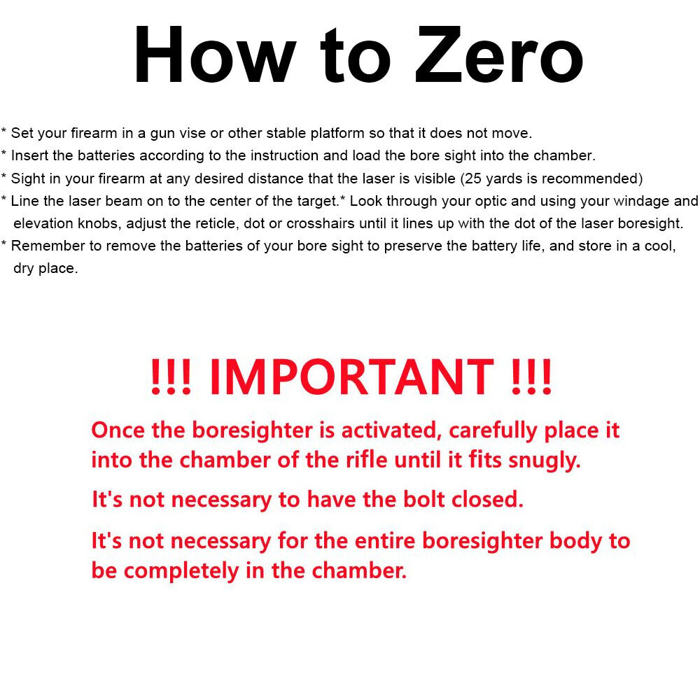 * Be sure that your firearm is unloaded and pointed in a safe direction before place the laser bore sight into the chamber.