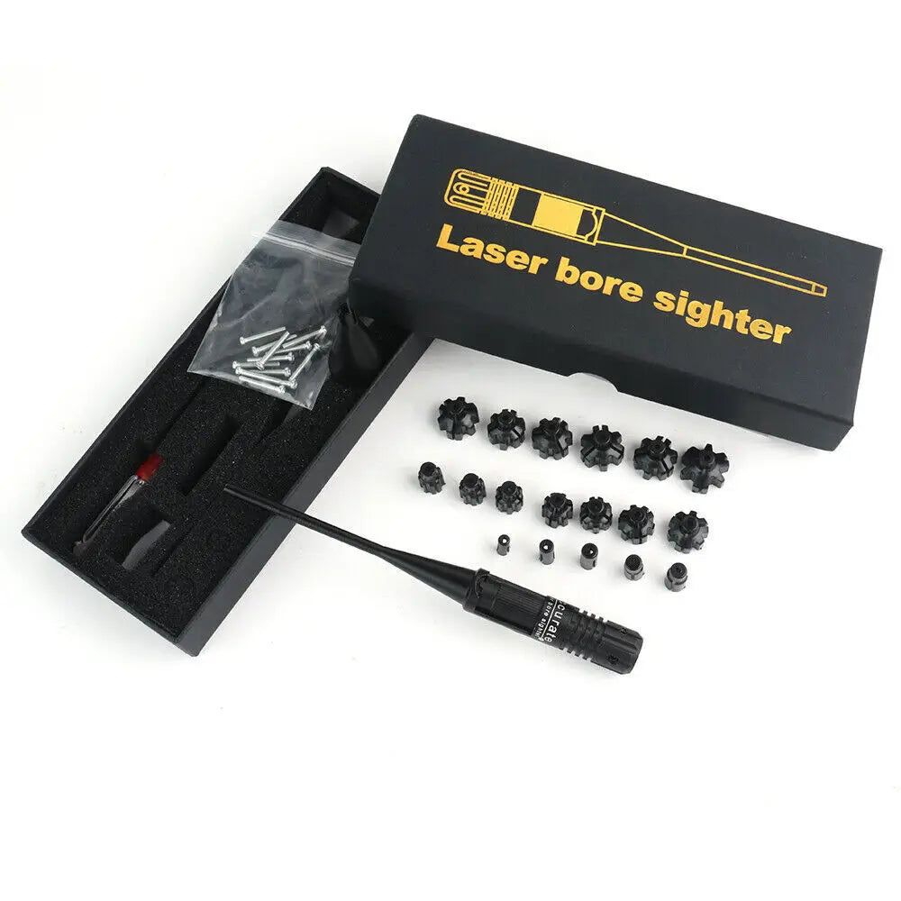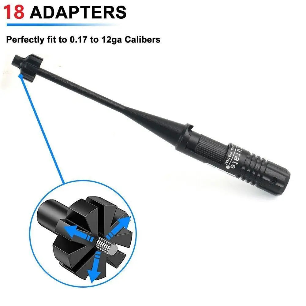 Red Laser BoreSighter Bore Sight kit for .17 to 12GA Caliber Rifle W/18 Adapters for Hunting