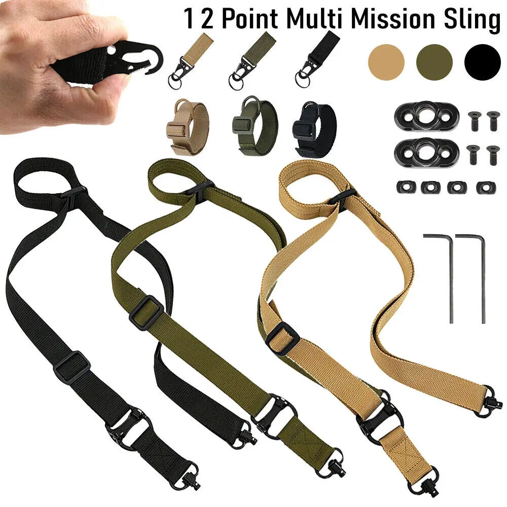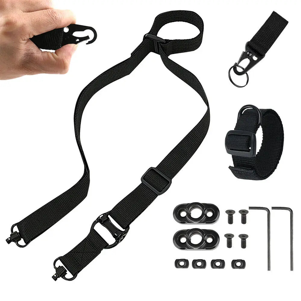 Rifle Sling 2 Point Multi Mission Rifle Sling Quick Adjust Gun Strap W/ QD Swivels + D Ring