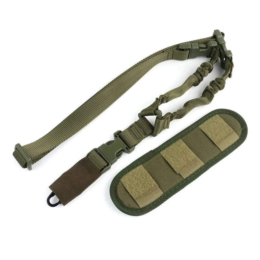 Single One Point Bungee Gun Rifle Sling w/ Shoulder Pad +HK Clip + Swivels Strap