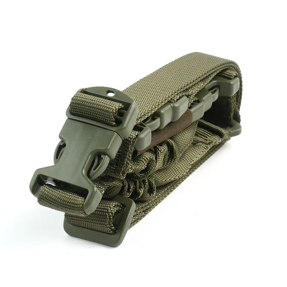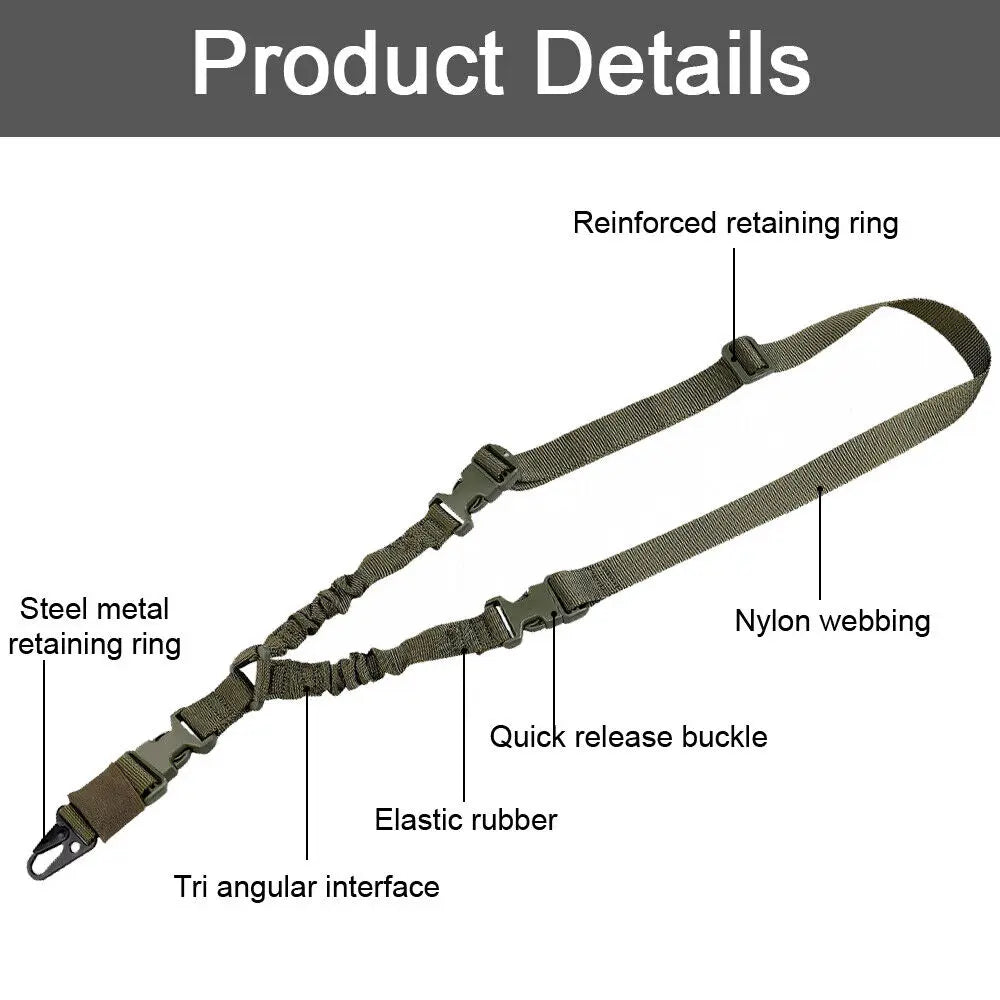 A fully adjustable thick 600 nylon single point sling with super strong dual bungees.