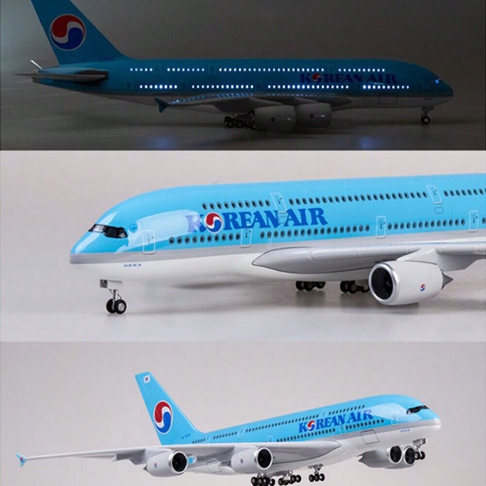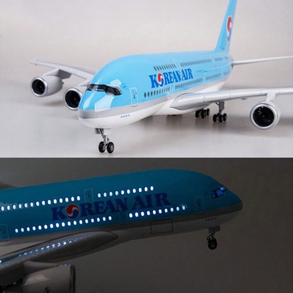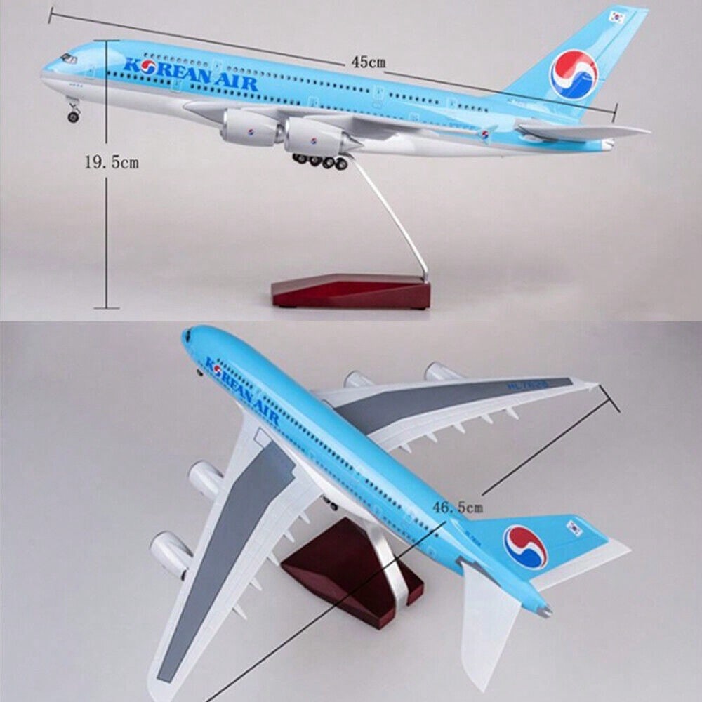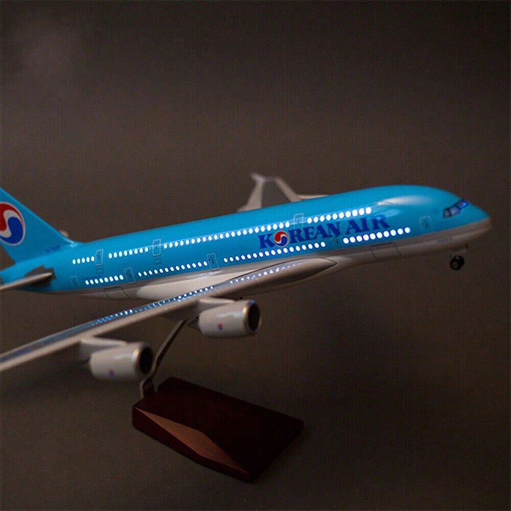 STONESKY 1:160 Korean Air Airbus A380 Resin Airplanes Model Ornament W/ LED Light Wheel