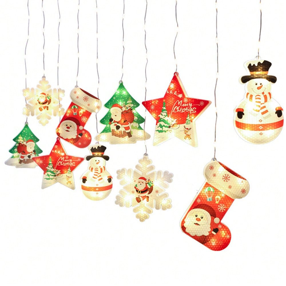 STONESKY 10Ft 10 LED Christmas Curtain Fairy Light USB Snowflake Santa Boot Star Decor