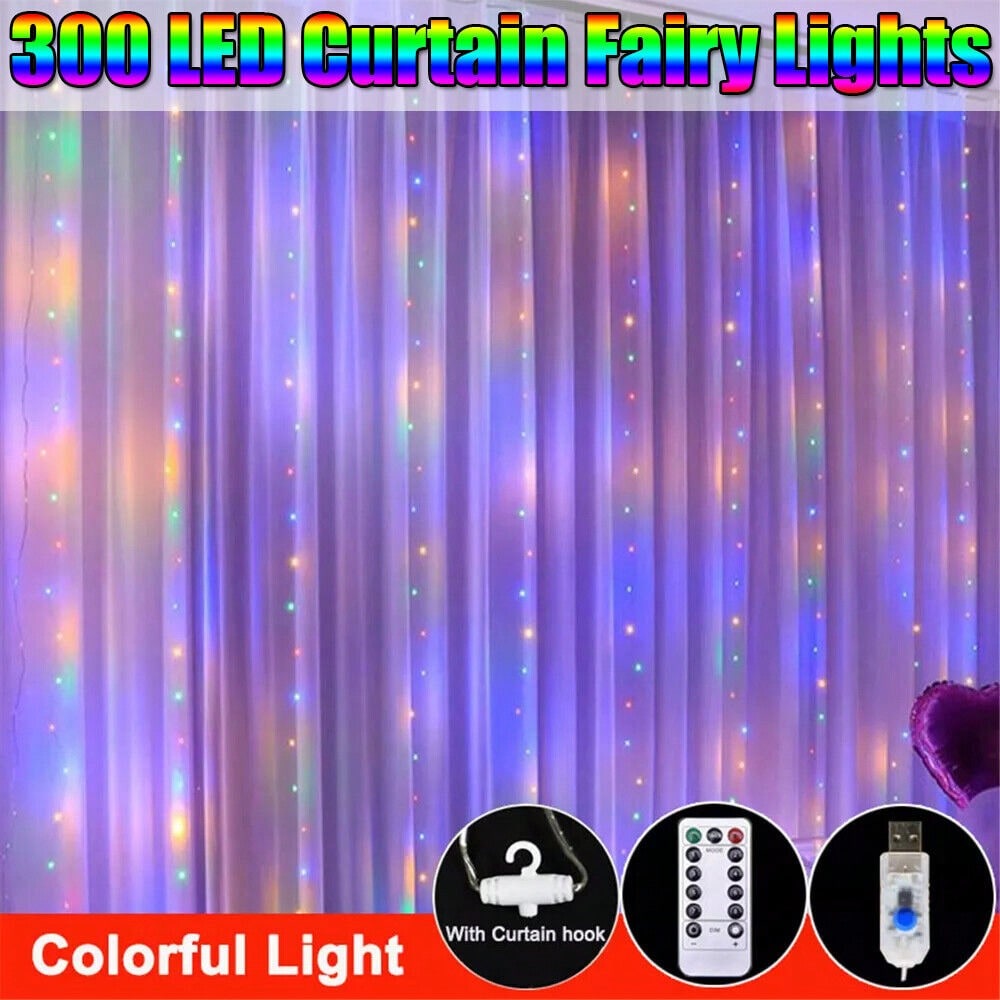 STONESKY 300 LED Curtain Fairy Lights USB String Light Xmas Wedding Party Decor w/ Remote