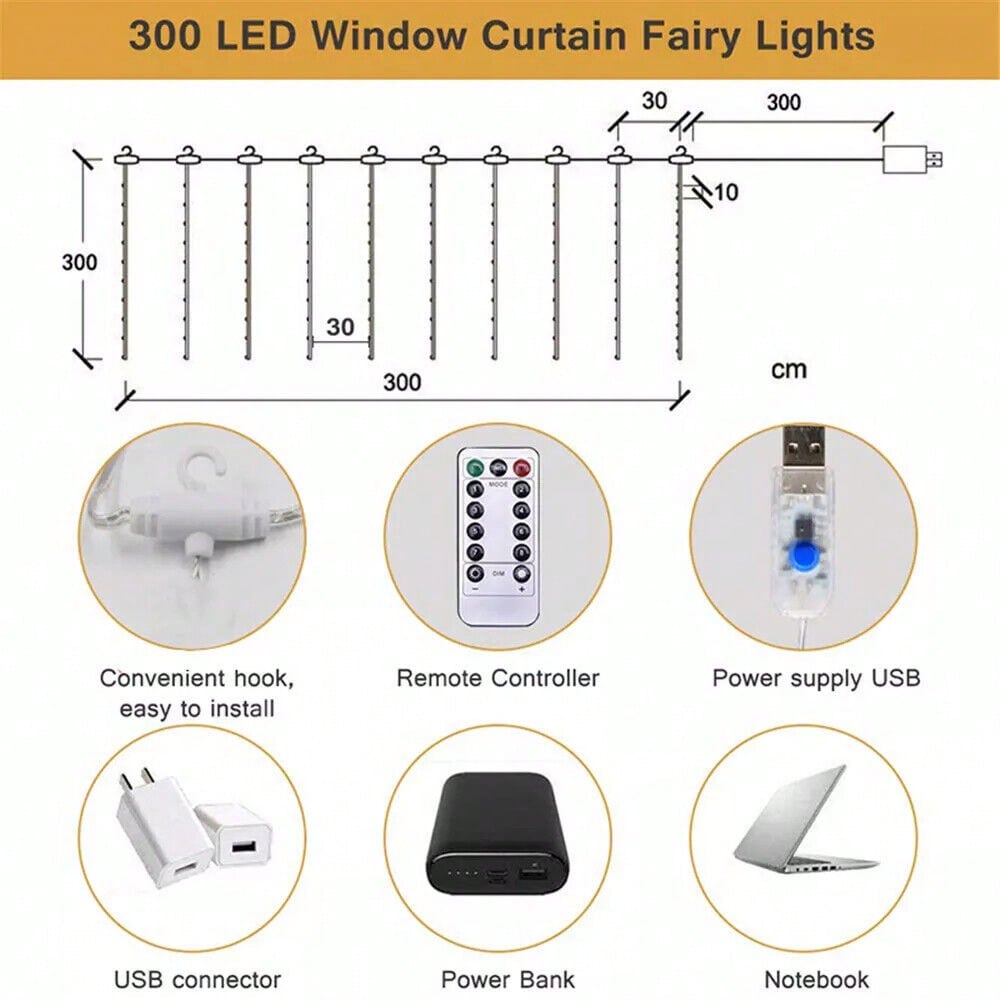 [Easy to operate]Convenient for you to be plugged into the computer, mobile power and other USB devices. Note: Our led curtains lights lasts as long as it is plugged in