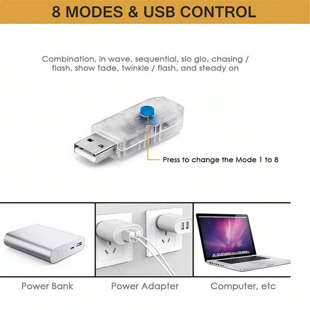 [Waterproof]The IP44 waterproof grade light string is designed to prevent splashing water and withstand light rain. (USB is not waterproof)