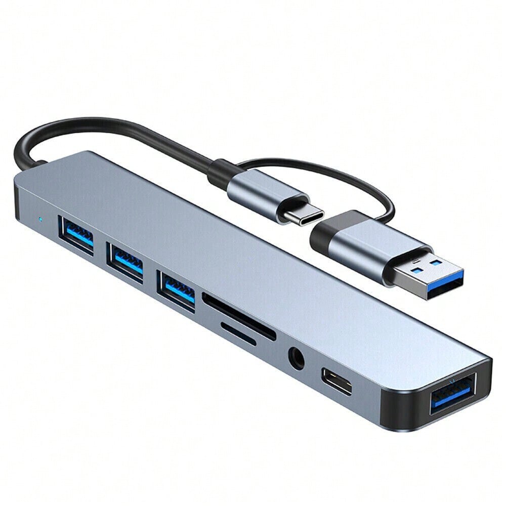 1.Double Head Design: USB Type C Hub Adapter, USB C&USB double head design, USB3.0+USB C, 8 port HUB.