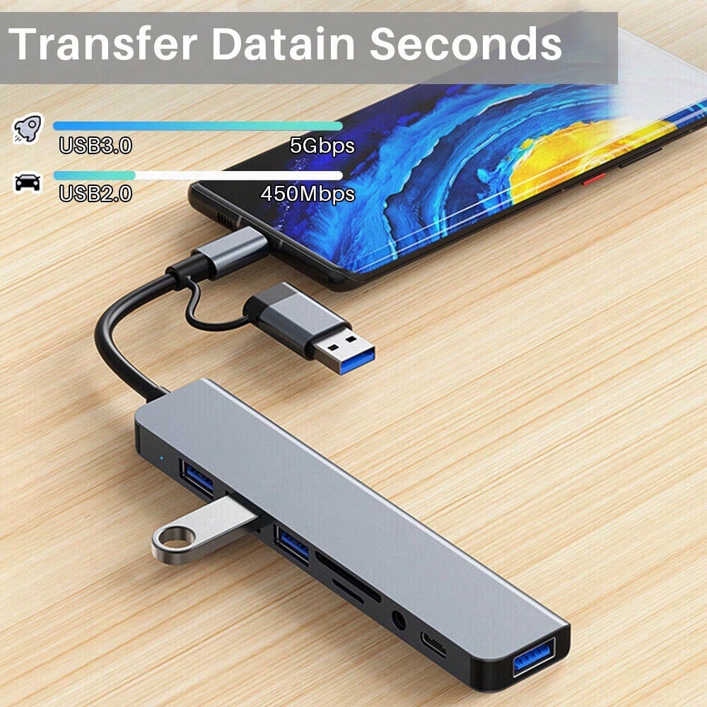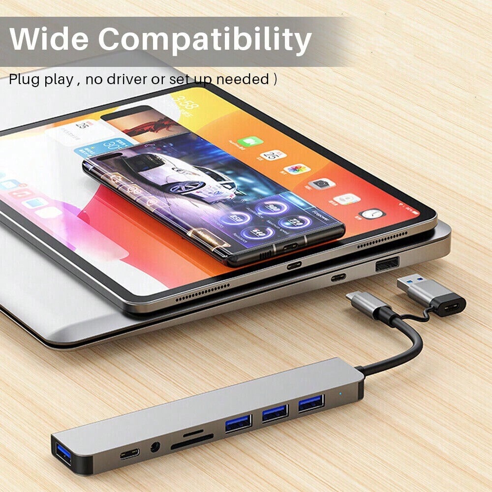 8 in 1 USB-C Hub Type C To USB 3.0 4K HDMI PD Adapter For IOS Pro/Air