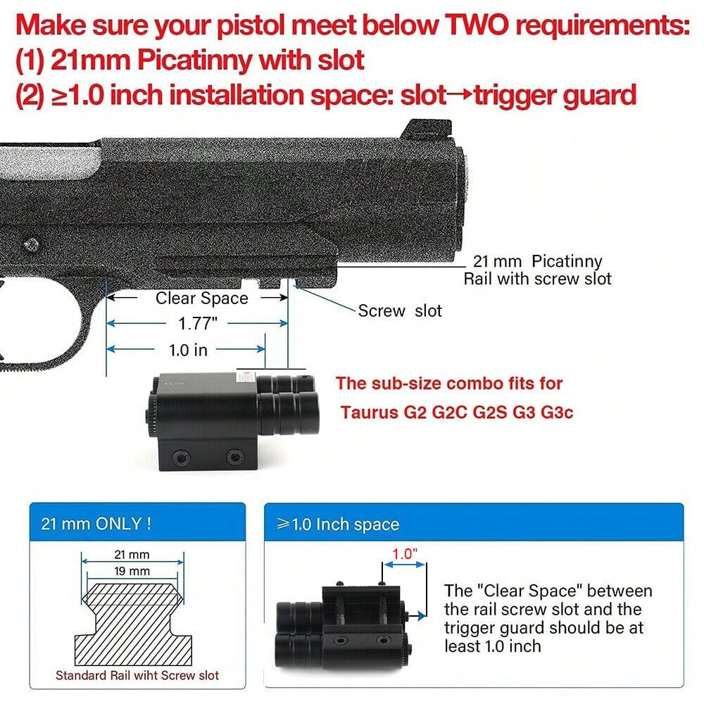 【Aviation Aluminum Alloy】This red laser sights for pistols is exquisitely crafted with aviation aluminum alloy, it has excellent corrosion resistance, high toughness and lightweight, can use on different
