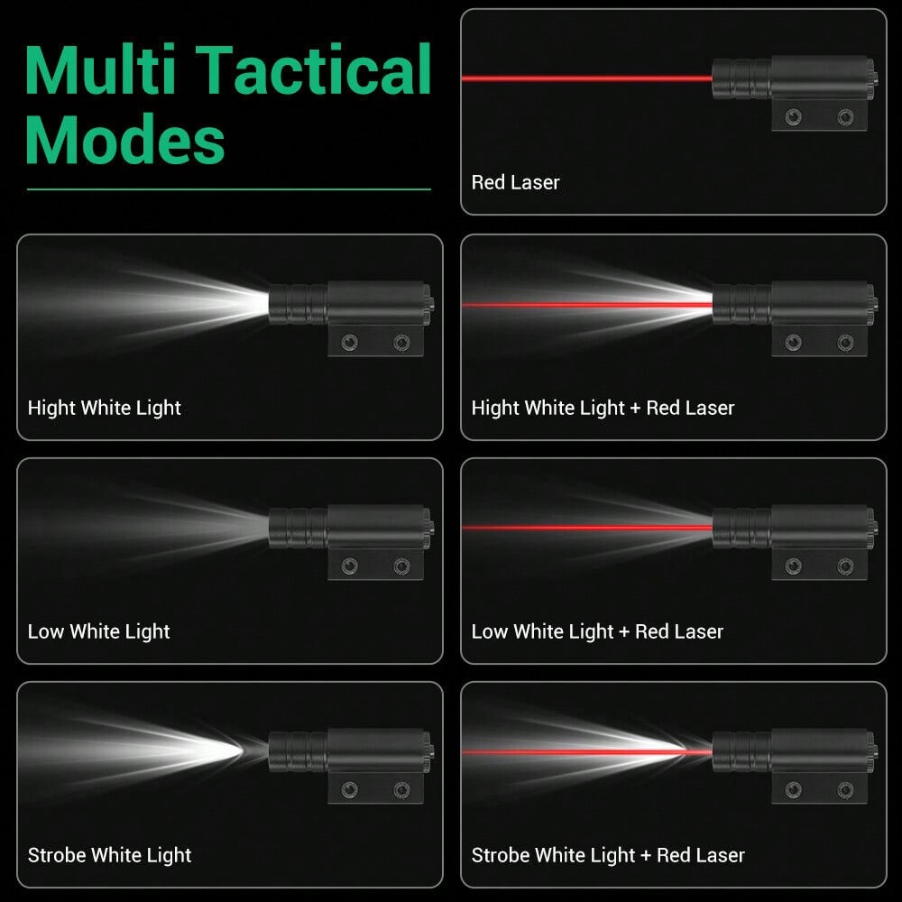 【LIGHTING & AIMING】It combines white light and green (red or blue) laser, providing accurate targeting with a class IIIa laser and illuminating, making it useful in low-light conditions.