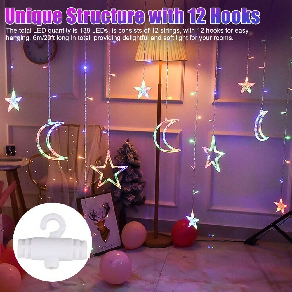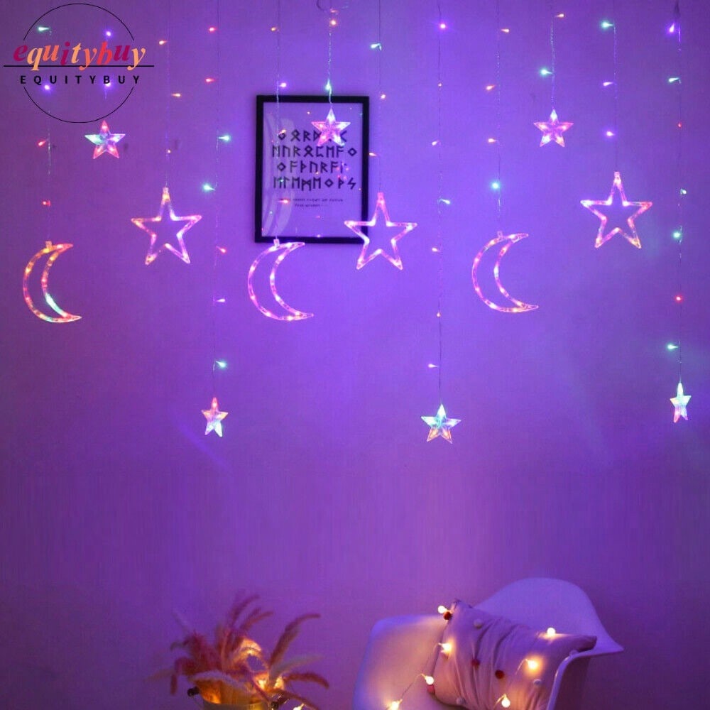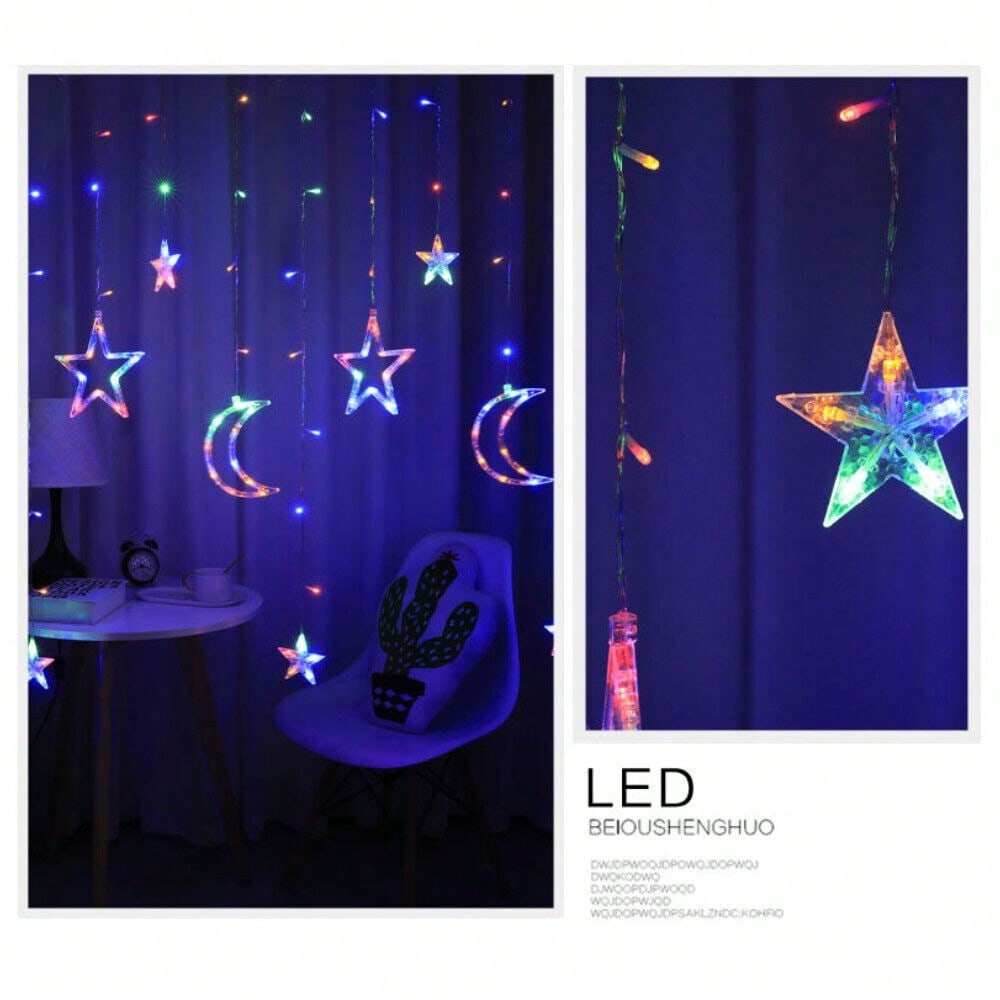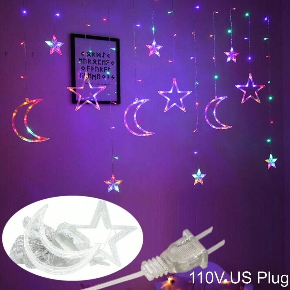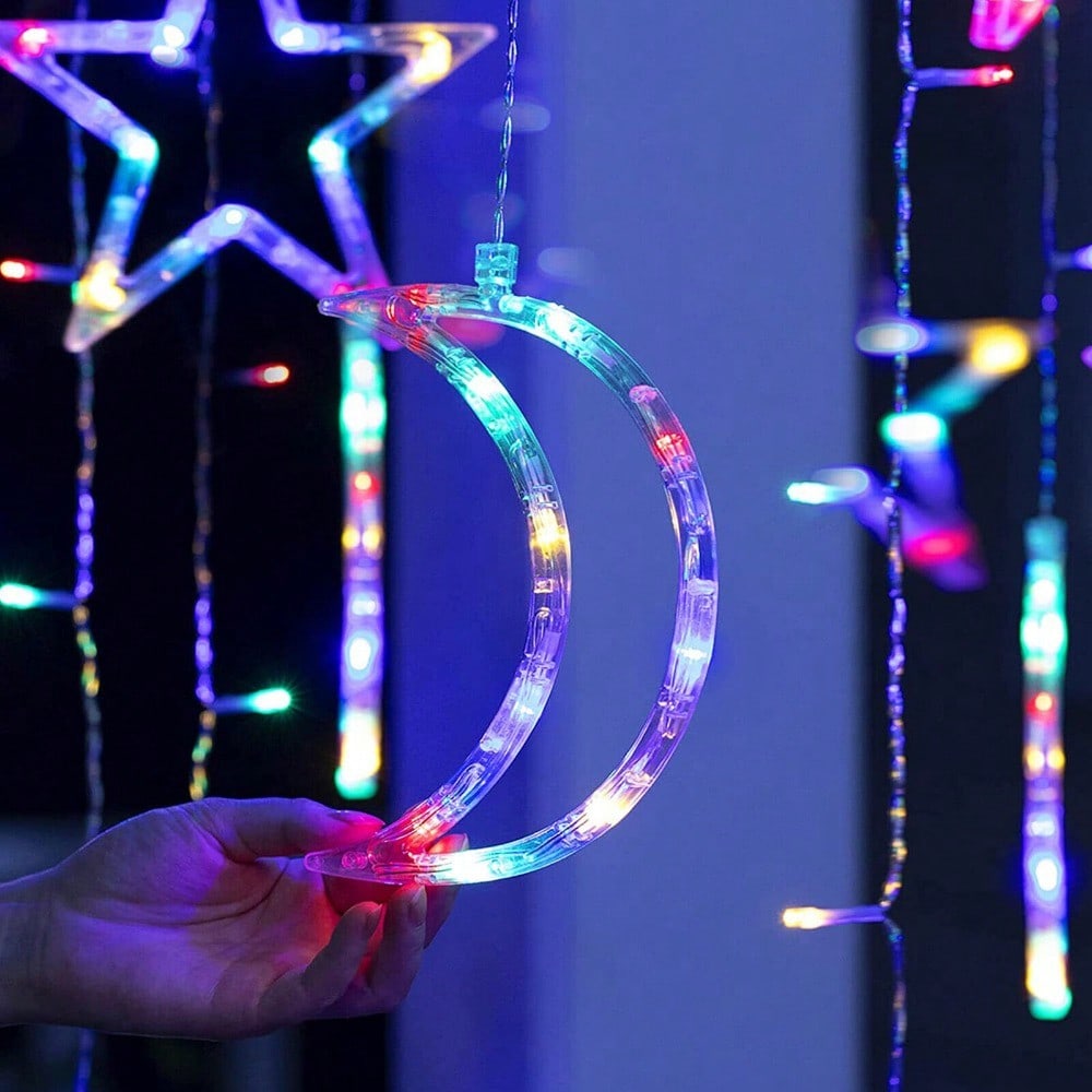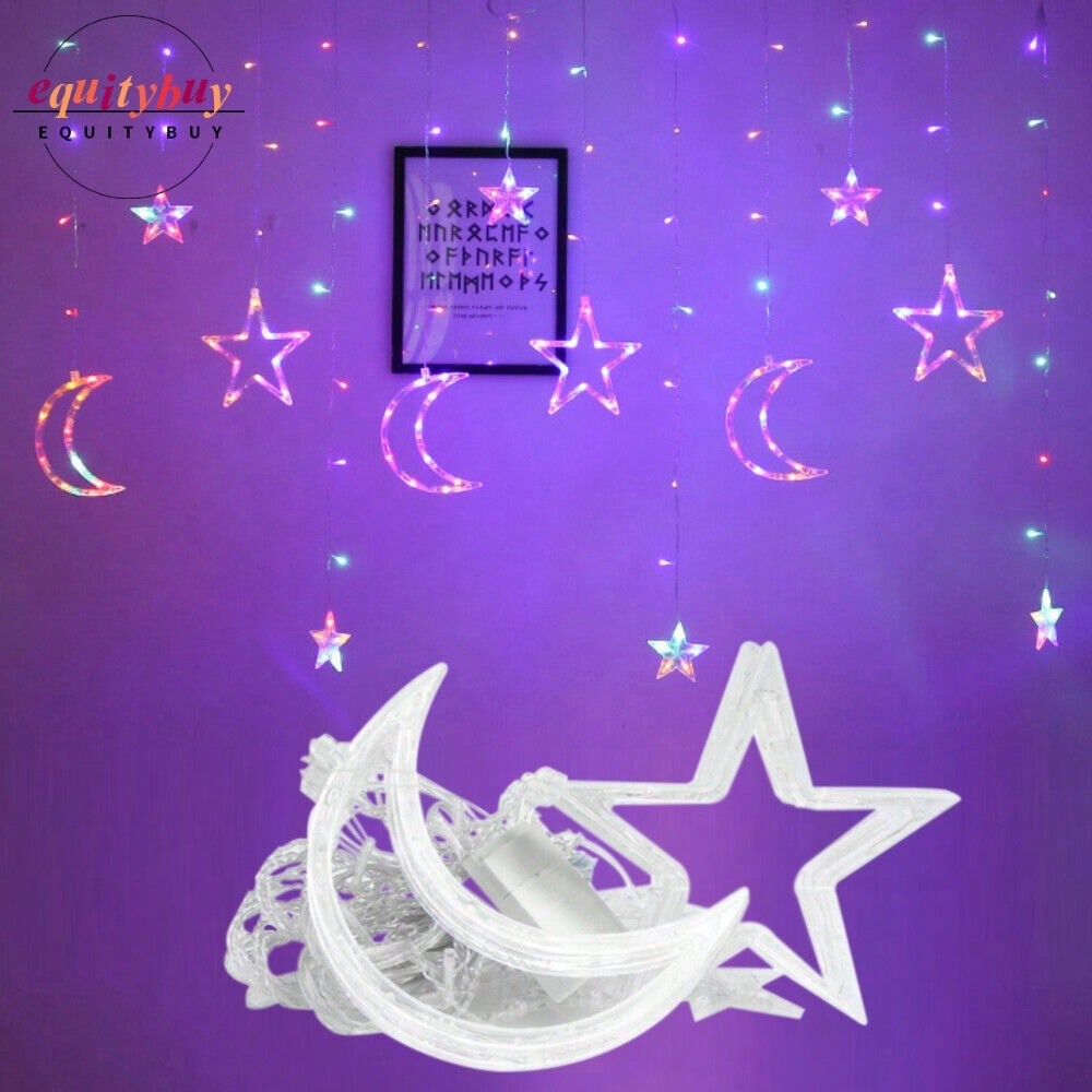 Twinkling Star Moon LED Curtain Lights Ramadan Eid Mubarak Fairy String Lighting
