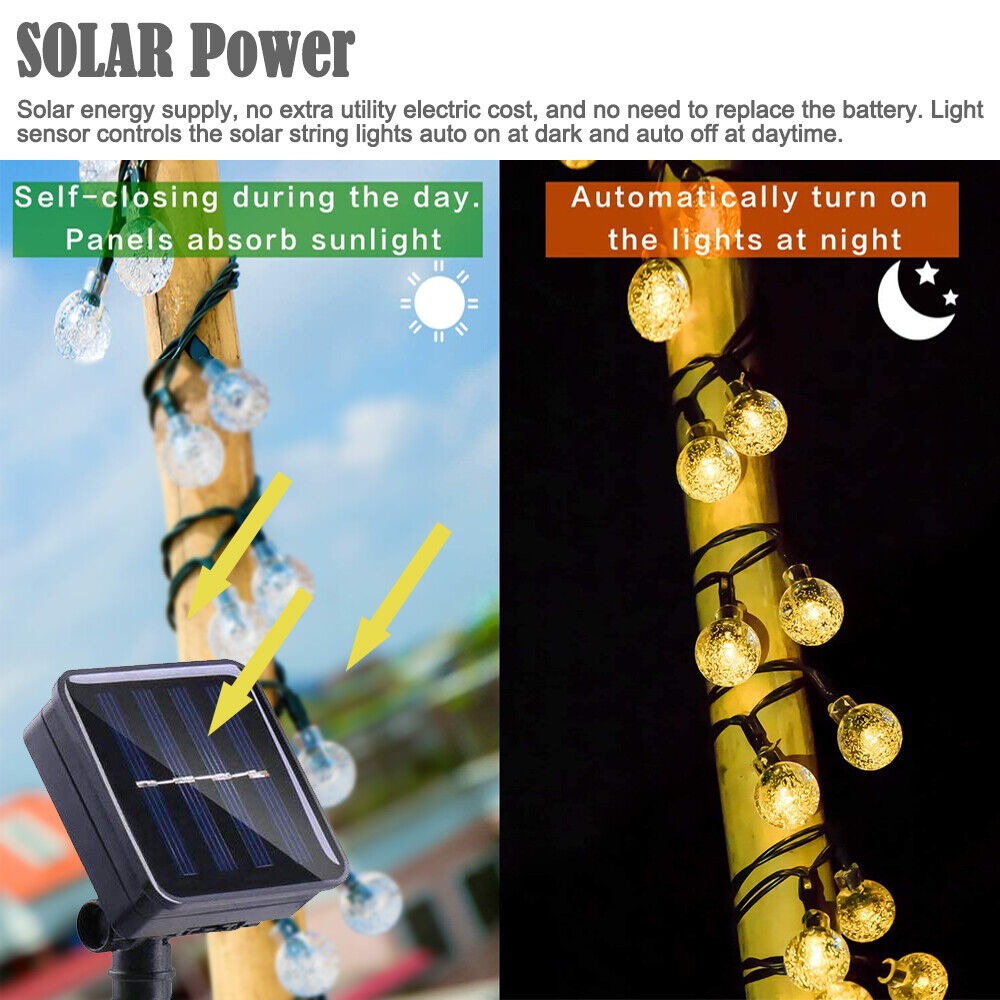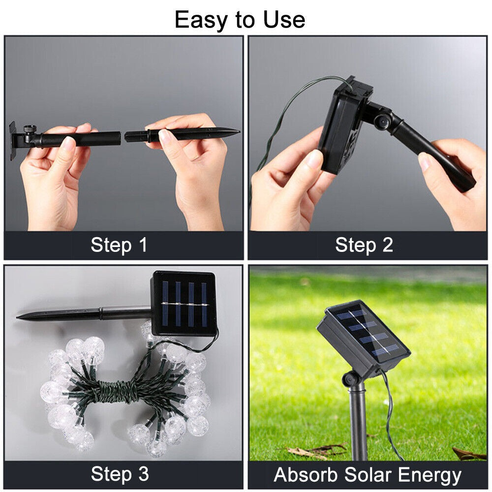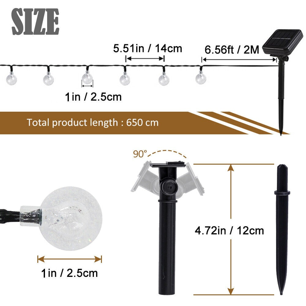 StoneSky Solar String Fairy Lights Crystal Ball Garden Patio Lawn Yard Lamp Warm White