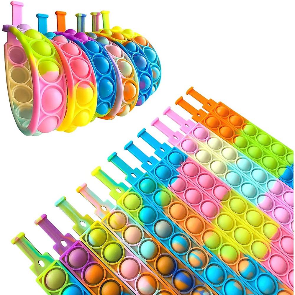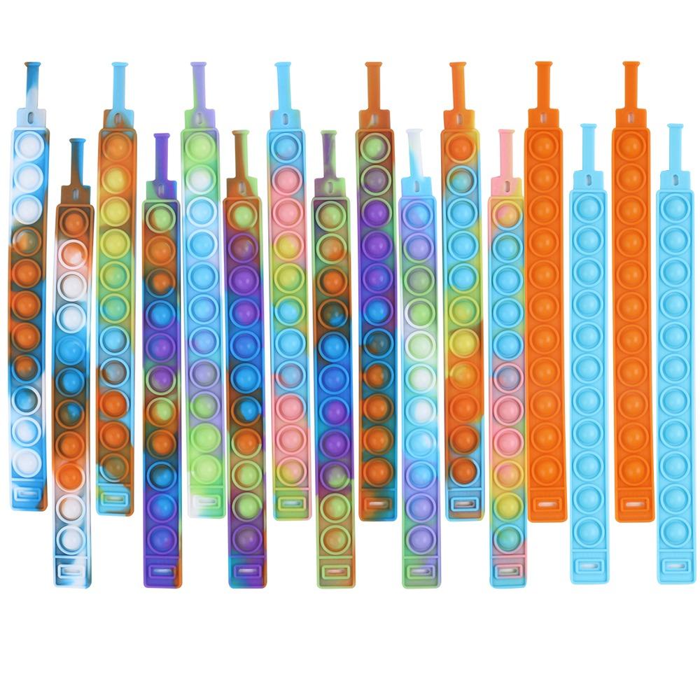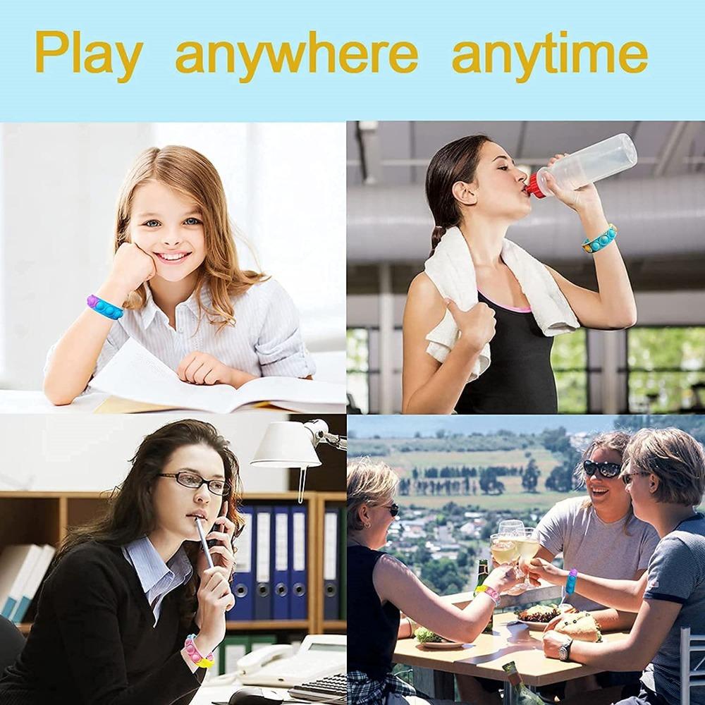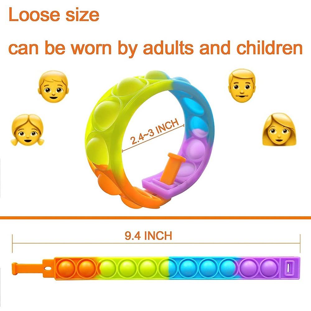 - 【Excellent Stress Reliever】: These fidget toy bracelets can effectively relieve anxiety and stress by pressing and the popping sound it makes. They are great fidgets wristband for adults, kids and anxiety, decrease depressions, more concentrate and focus on working! 【Lightweight & Portable】:It can be carried around you as a wristband and brings fun to you anytime and anywhere. It is an excellent alternative to other fidget and sensory toys.