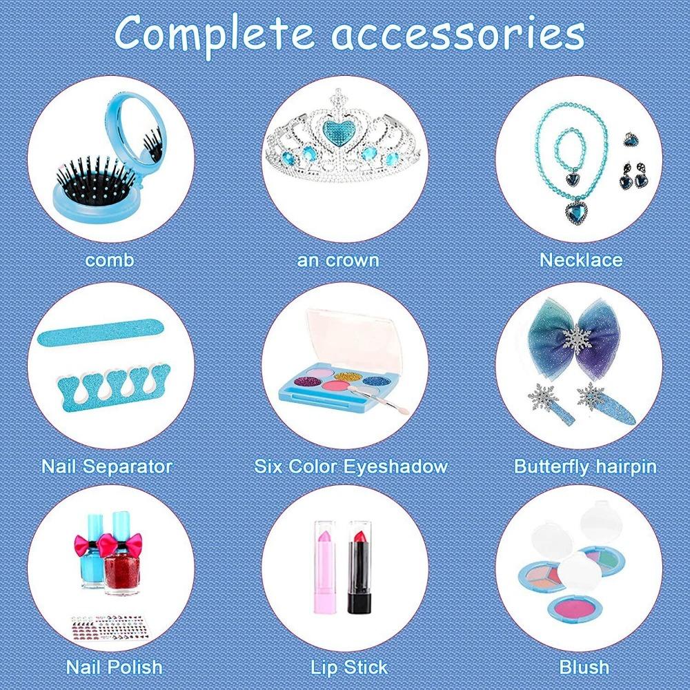 - Non-Toxic and Kids Friendly Makeup: Little girls real make up use water-soluble formula, no preservatives, mild and non-irritating, no burden on the skin. It can be washed directly with water, easy to clean, not irritating. They ensure your children are safe to play, please rest assured to use.