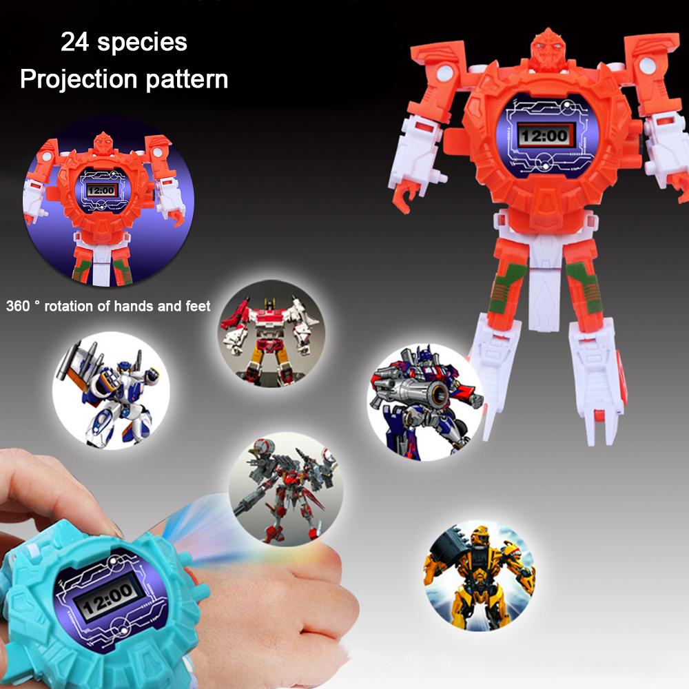 - This is a puzzle early education science knowledge cartoon projection 24 kinds of pattern deformation new robot Warriors-toy electronic watch