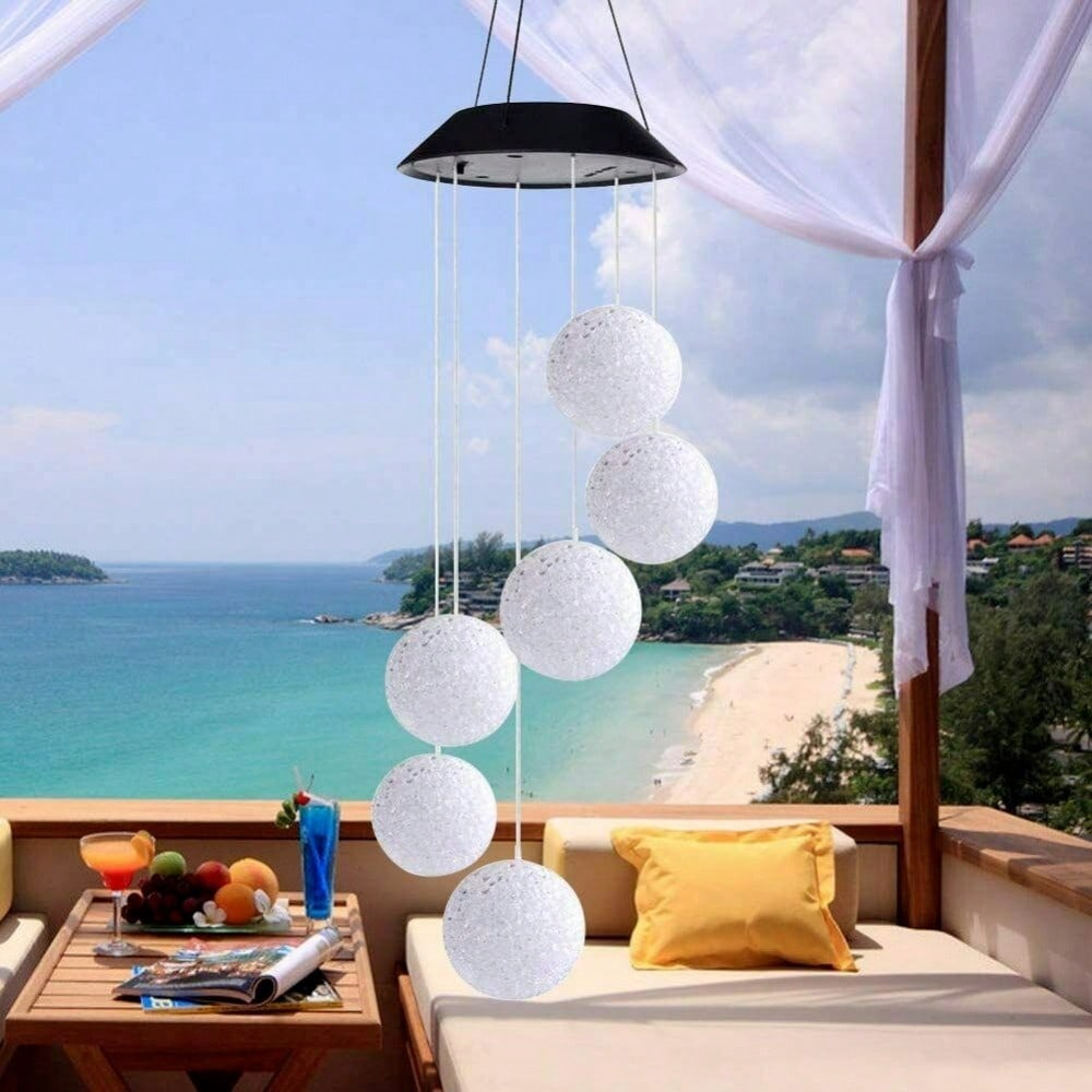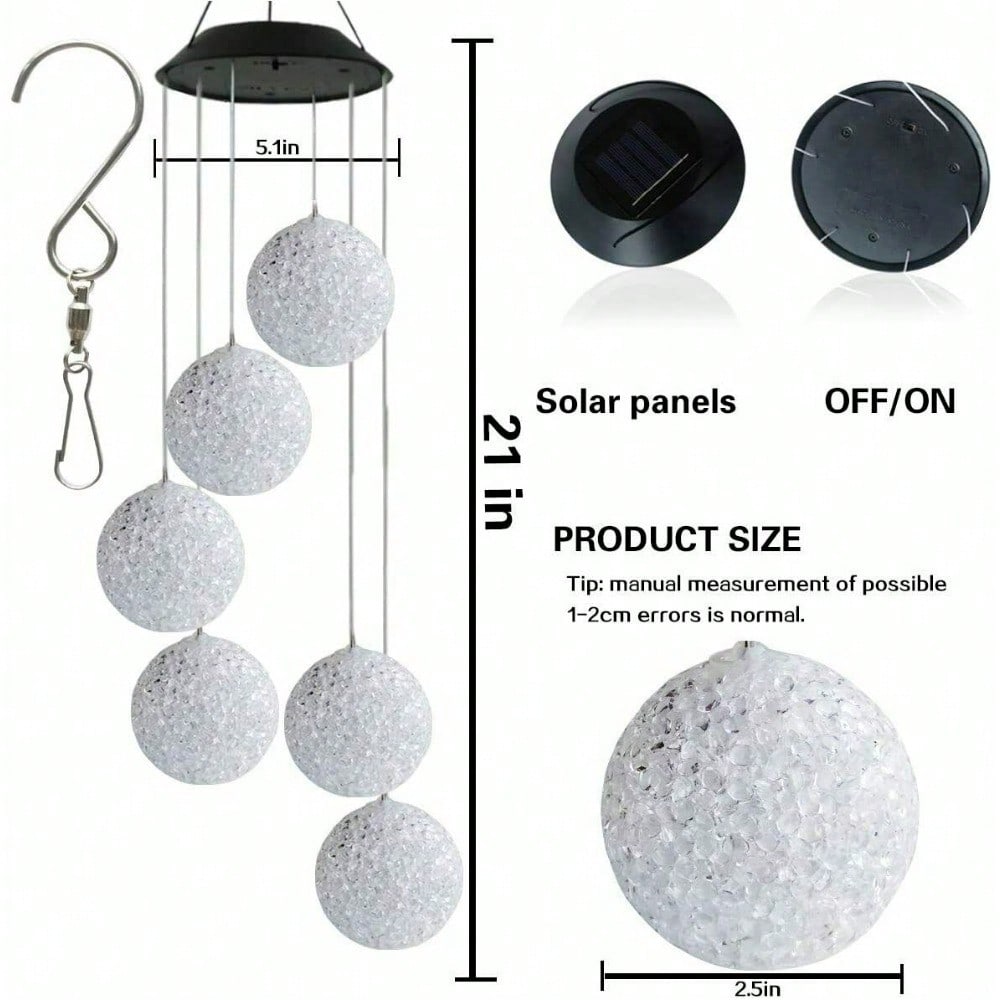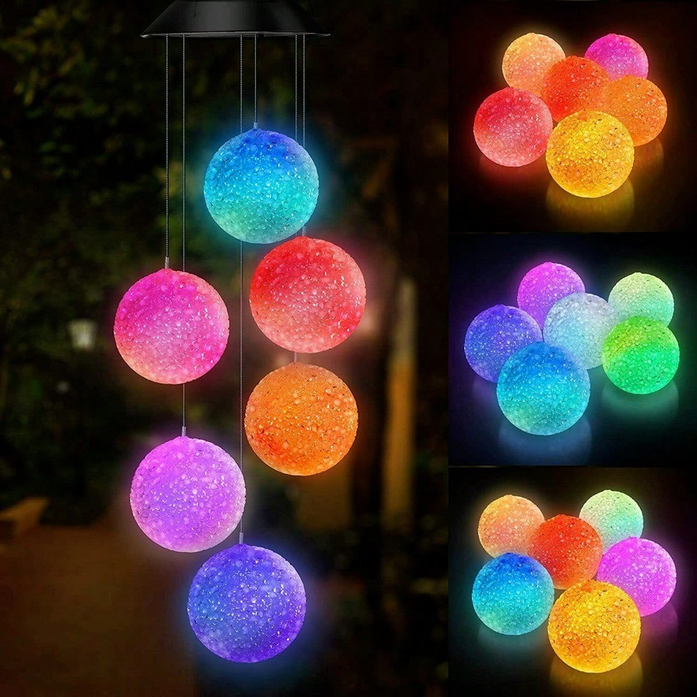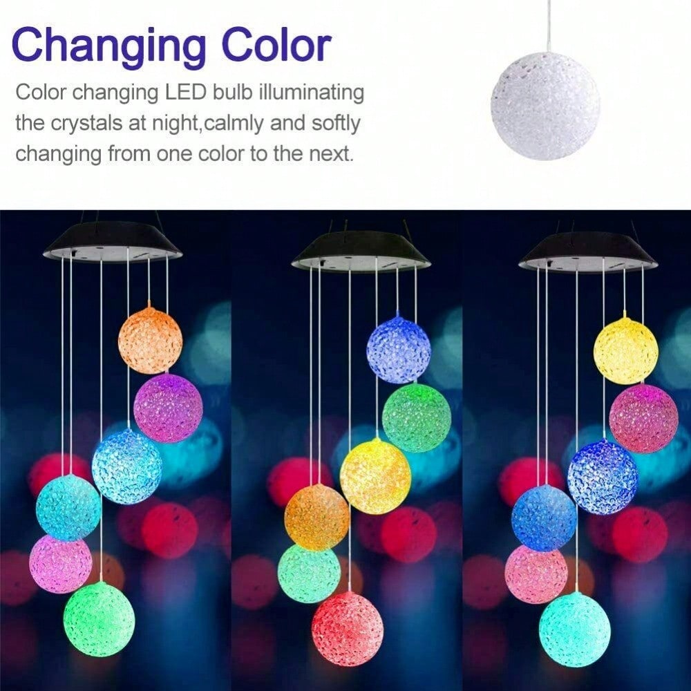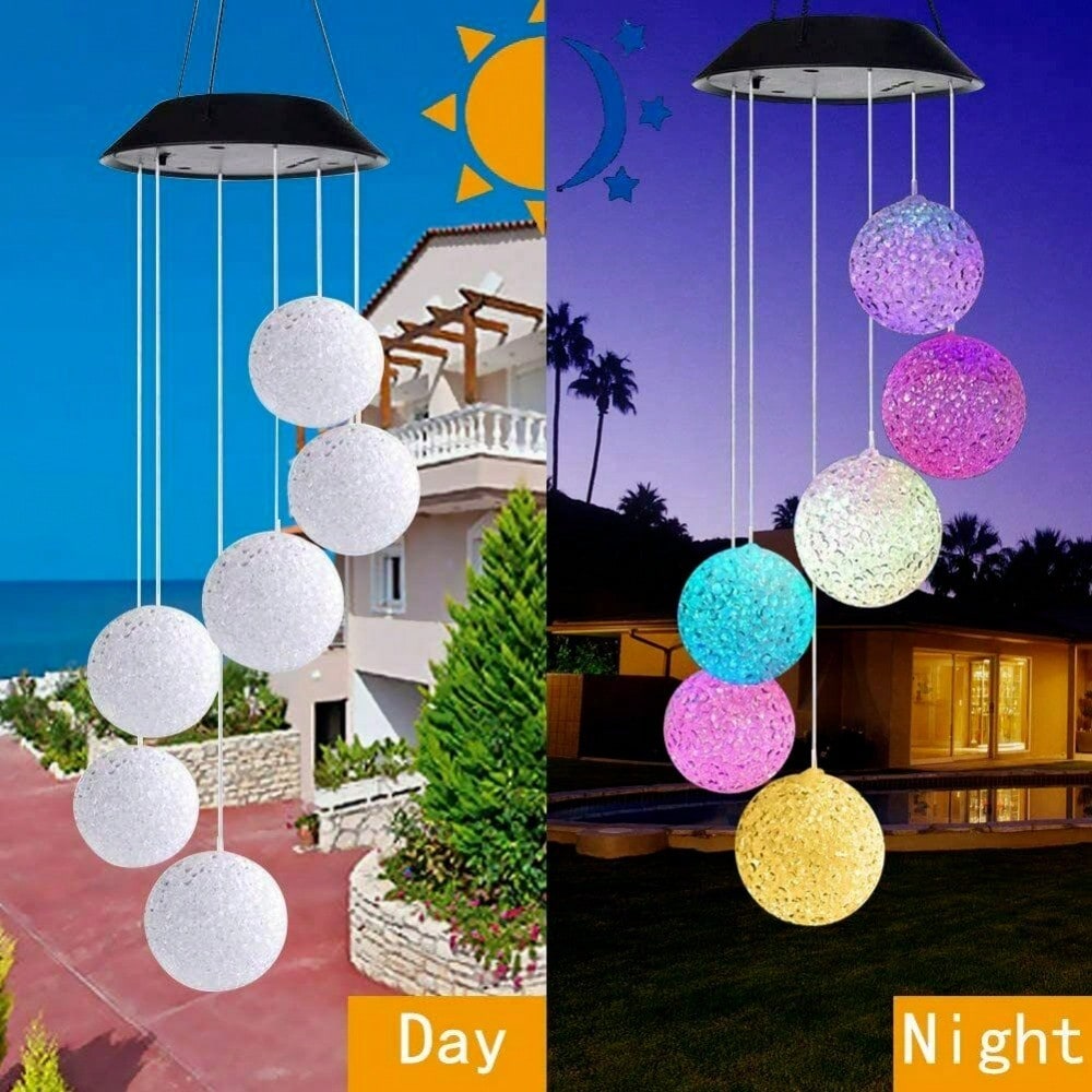 Ball LED Color Changing Solar Wind Chime Garden Yard Hanging Light Lamp Decor WX