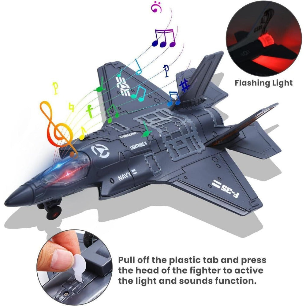 STONESKY F35+F16 Pull Back Diecast Fighter Jet Plane Model Toys for Kids with Sound Light
