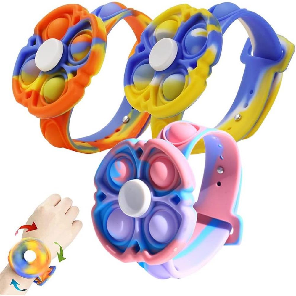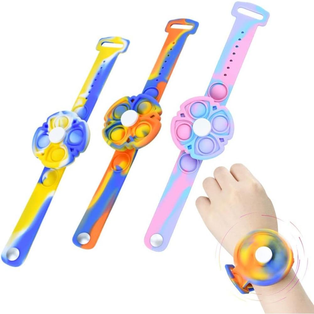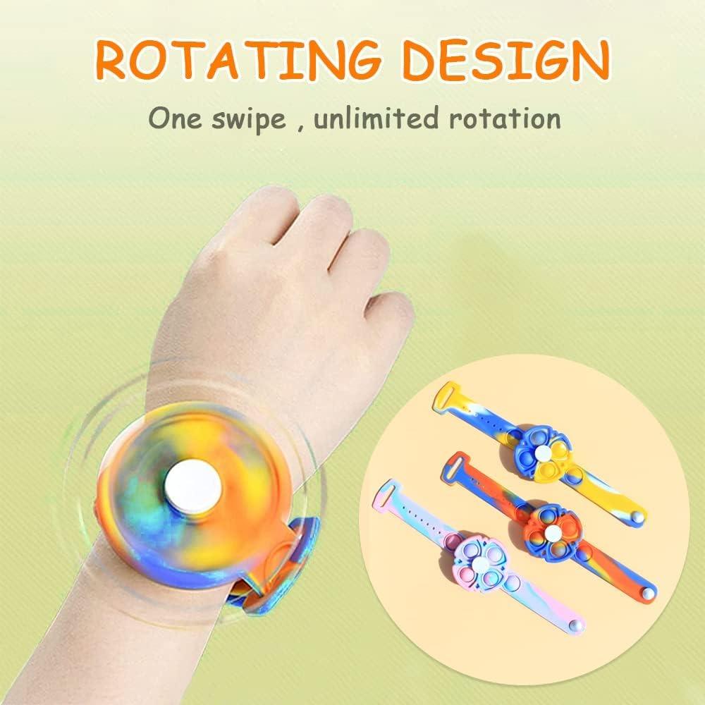 STONESKY Rotatable Push Pop Bubble Bracelet Toys Fidget Spinner Watch Band Toy for Kids, Sensory Fidget Bracelets Stress Relief Fingertip Press Simple Dimple Silicone Wristband (Multicolor 3PCS)