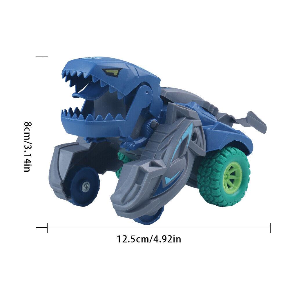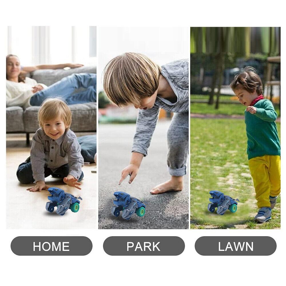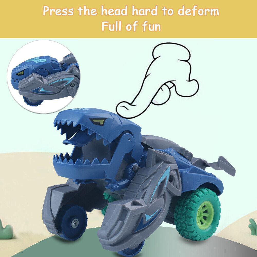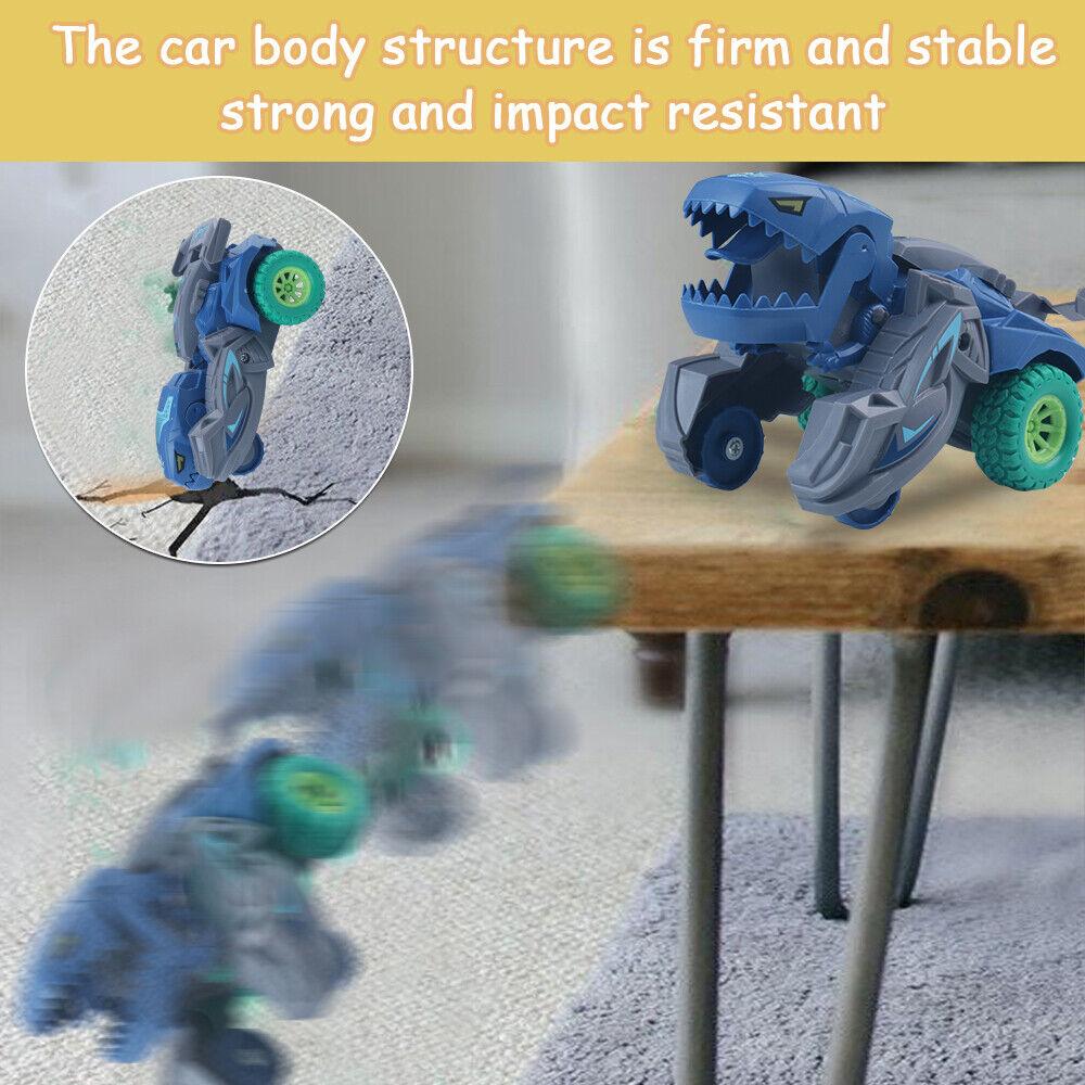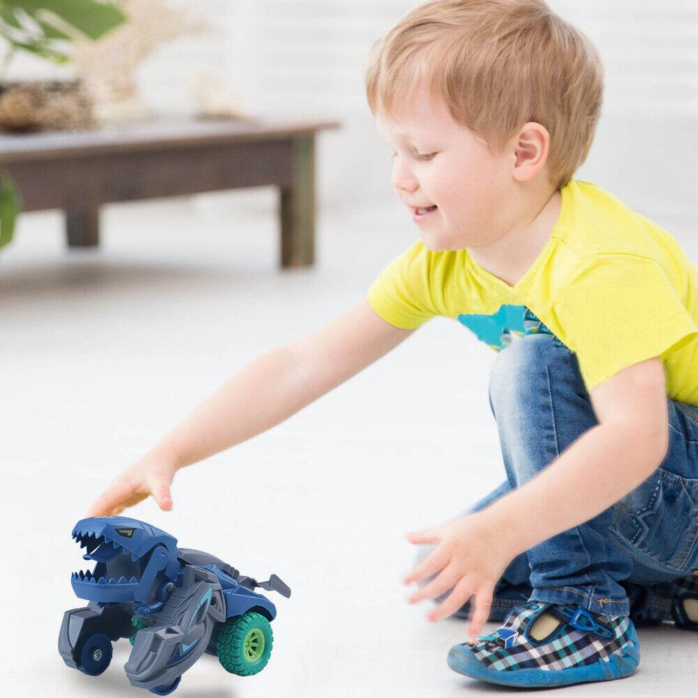 【Dinosaur Toy Cars】The simple Inertia Car dinosaur cars are easy to play, go fast and sturdy. Only need to gently push, the toy car will rely on inertia glide. The slight collision can trigger the deformation of the toy car.