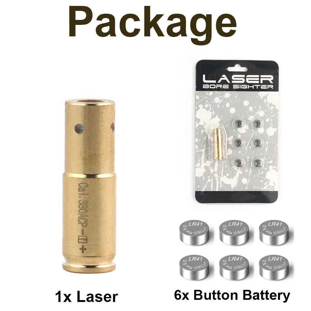 Tactical CAL.380ACP Boresighter Universal Laser Bore Sight Red Dot Cartridge w/ 6 Battery scope