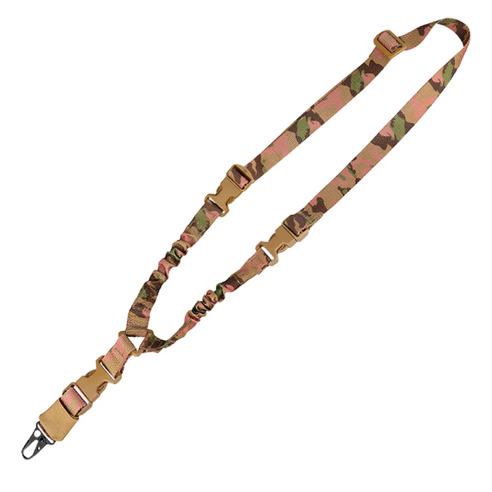 Our single point bungee sling features a tubular nylon and elastic covered clip.