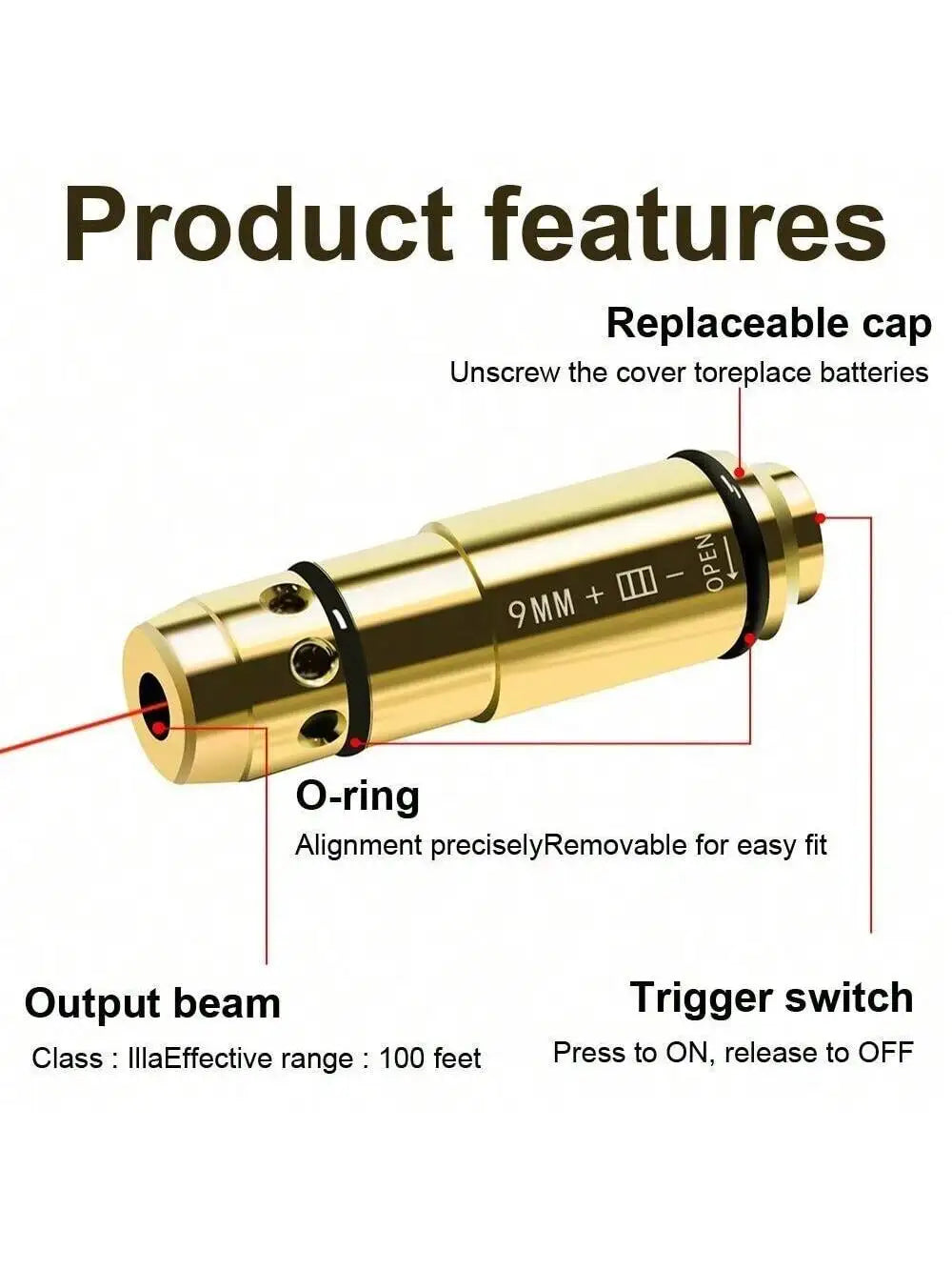 Training 9mm Red Laser Bore Sight Cartridge Trainer Outdoor Dry Fire Shooting US