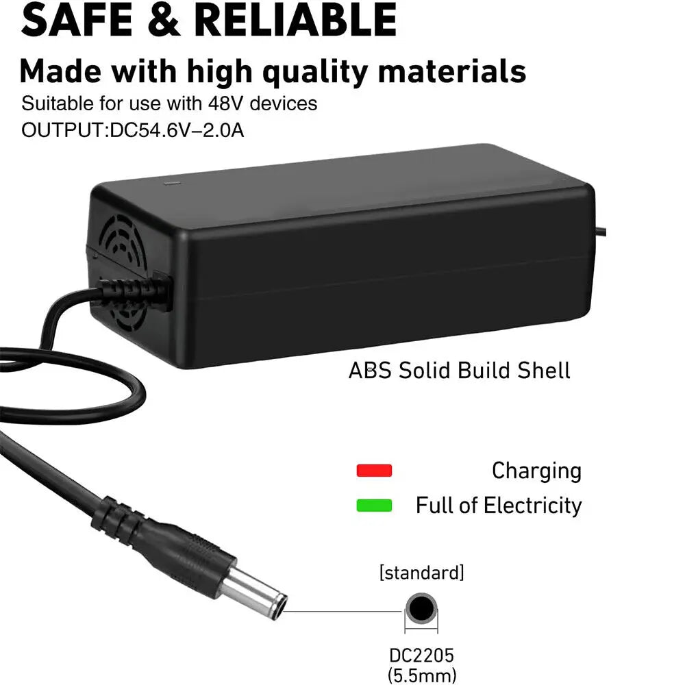 Product Compatibility:Equipped with multiple output heads for switching between your different devices, our charger is compatible with 48V lithium-ion batteries and works with many popular brands