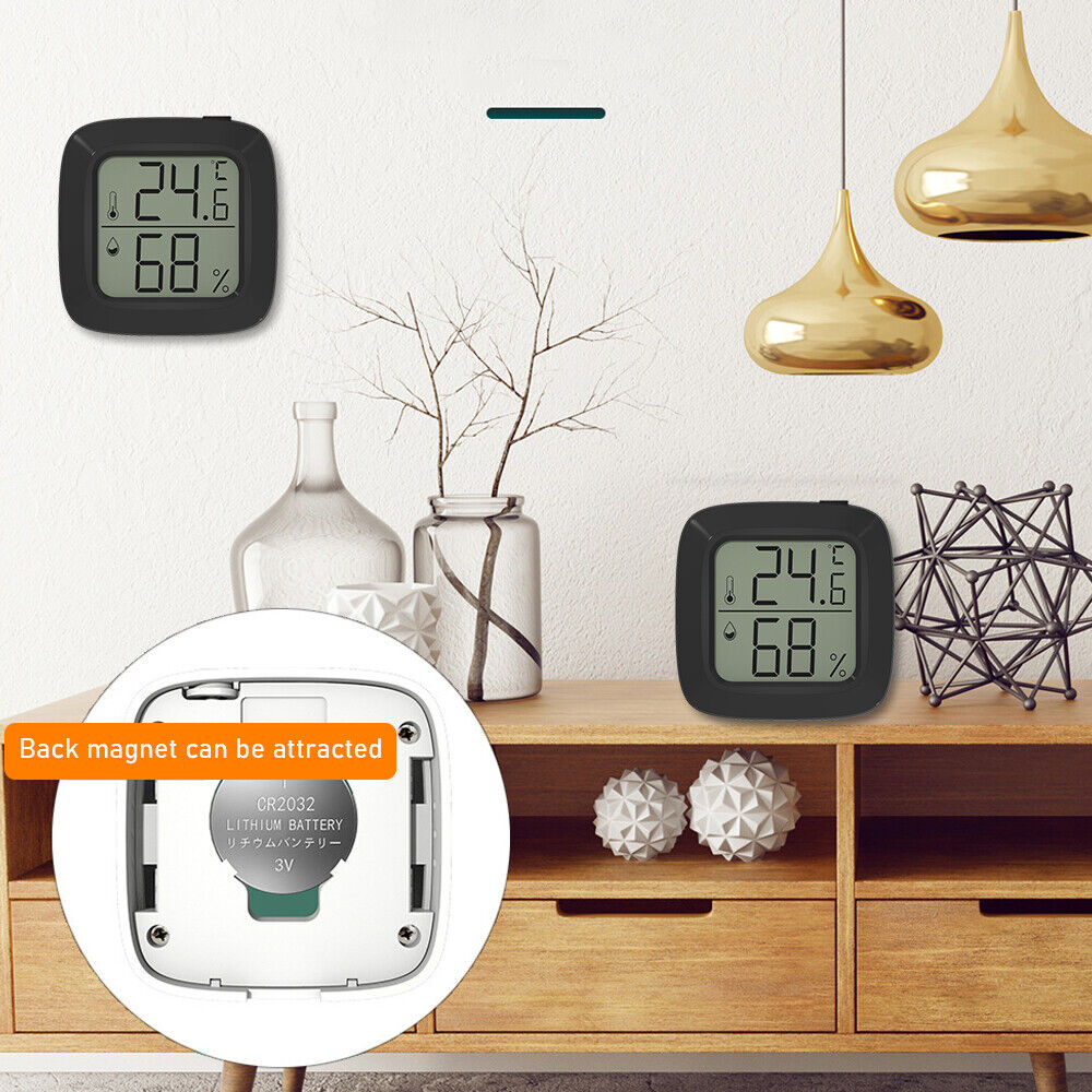 Multiple mounting options: Our product has 2 mounting options: Magnetic Back / double-sided tape, place the wall thermometer anywhere you wish such as living room, baby room, kitchen, greenhouse, guitar room, office, and cellar.