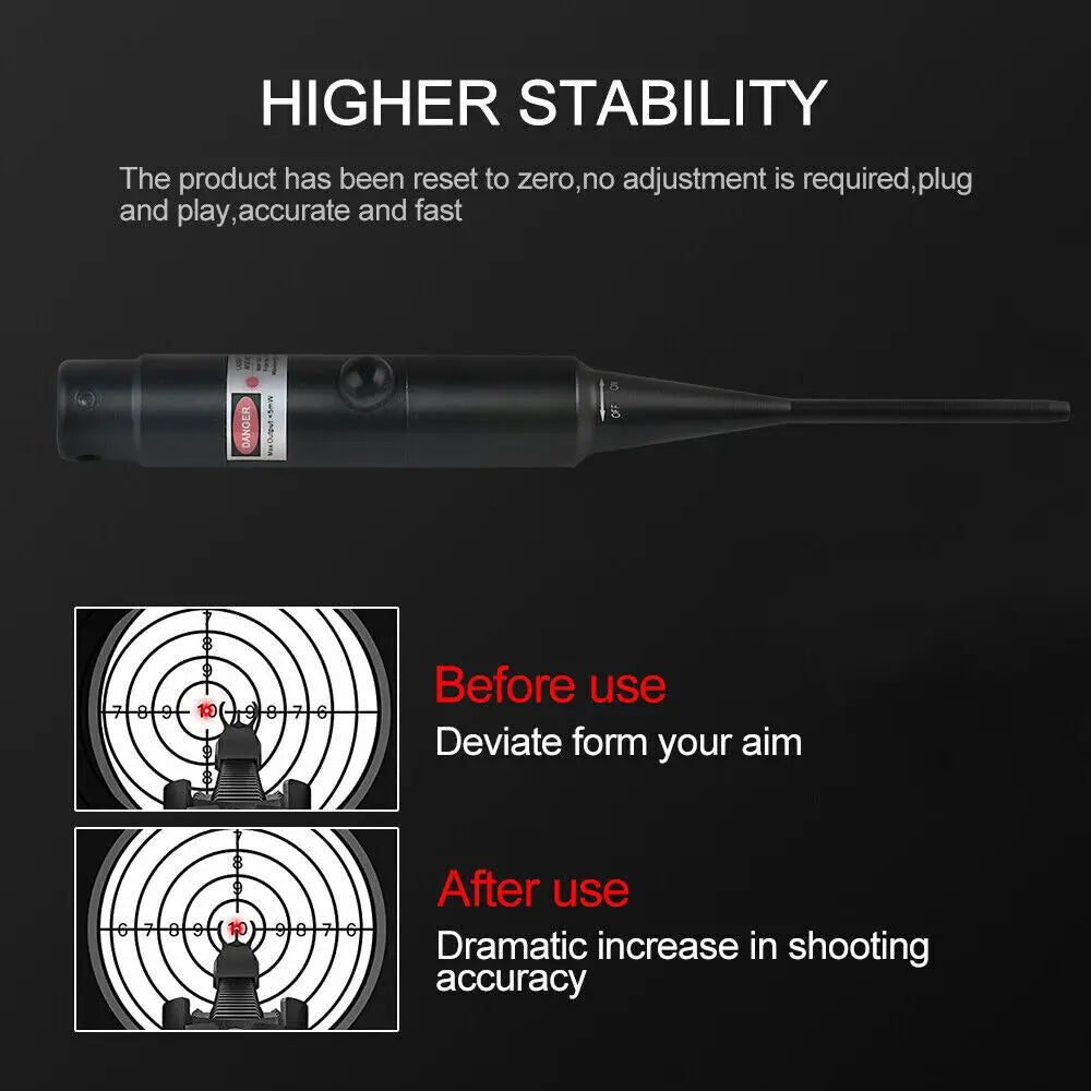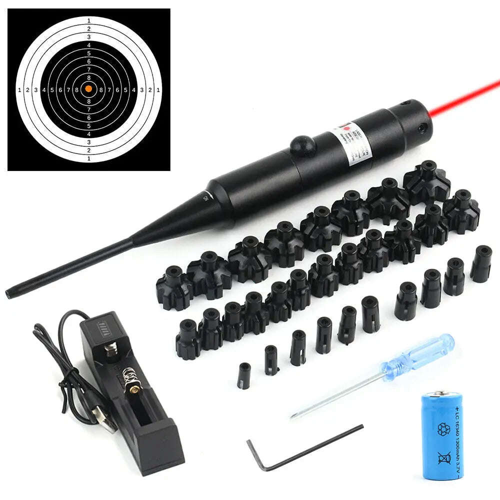 US Red Laser Bore Sight Collimator .17 to .78 Sighter For Rifle w/30 Adapters Easy To Use