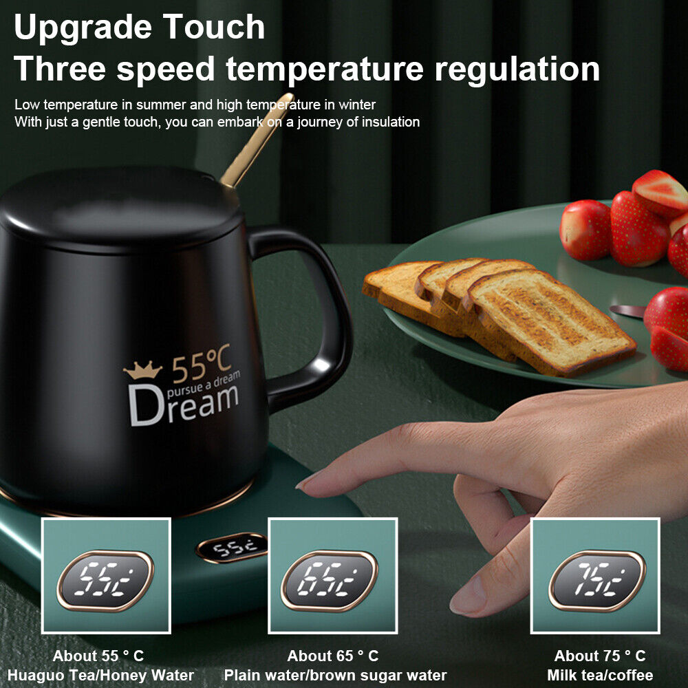 3 Temperature Settings*:This electric mug warmer can keep your coffee; milk; tea; and other hot beverages at your desired drinking temperature with three heat settings(55℃/131℉; 65℃/149℉; and 75℃/167℉.) The intelligent temp display and the touch switch allow for intuitive and hassle-free operation. You can enjoy your cup of joy throughout the day at the optimal temperature.
